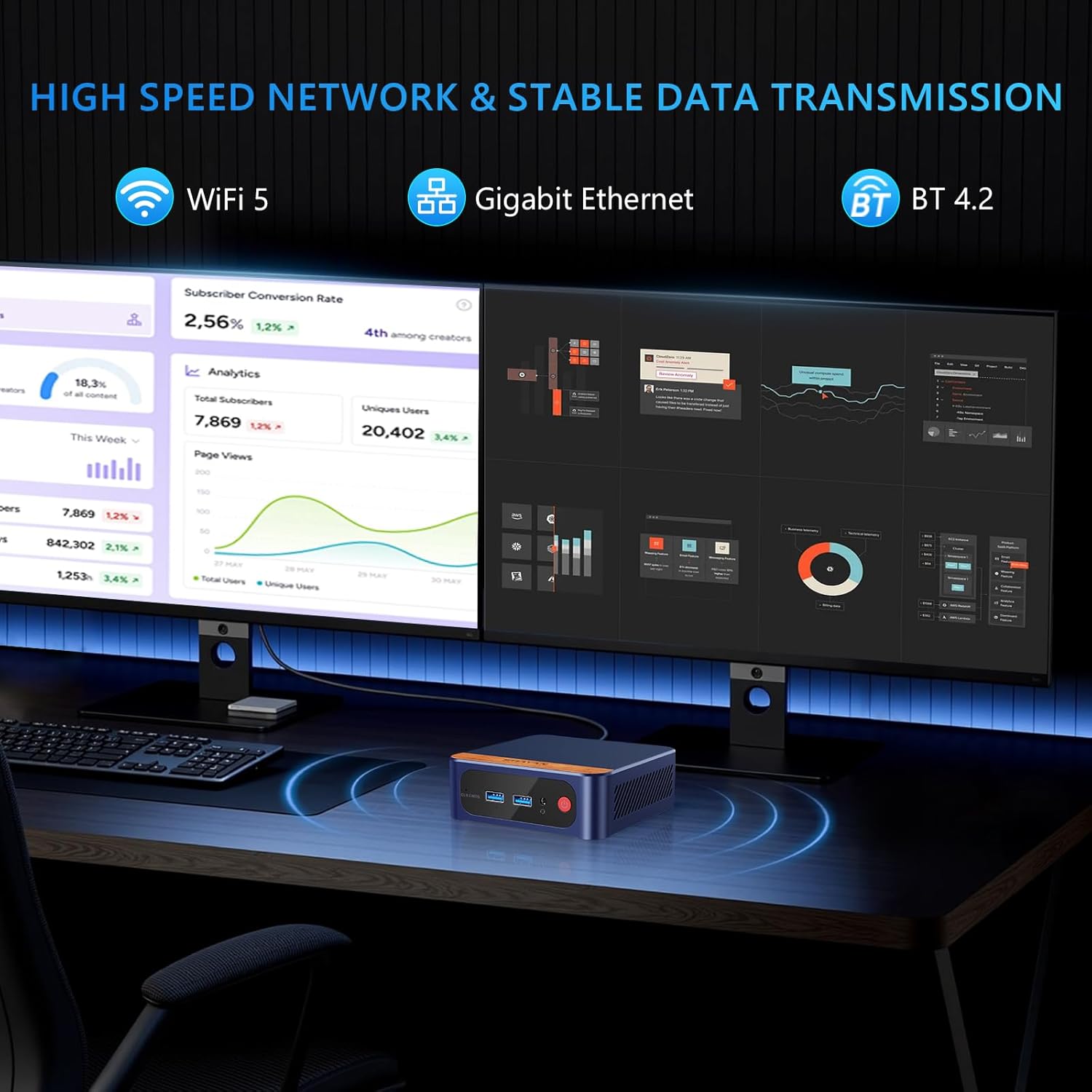 UBUNTU LINUX MINI PC & Dual 4K DisplayThe small computer is specifically designed to run the Linux Ubuntu operating system flawlessly providing a secure and highly customizable computing experience. The mini pc computer can meet your different needs for those who prefer the flexibility and power of Linux. The linux mini pc delivers stunning 4K UHD visuals (up to 1000MHz) with powerful graphics performance. With dual HDMI 2.0 you can easily multitask and enhance productivity on two 4K@60Hz displays