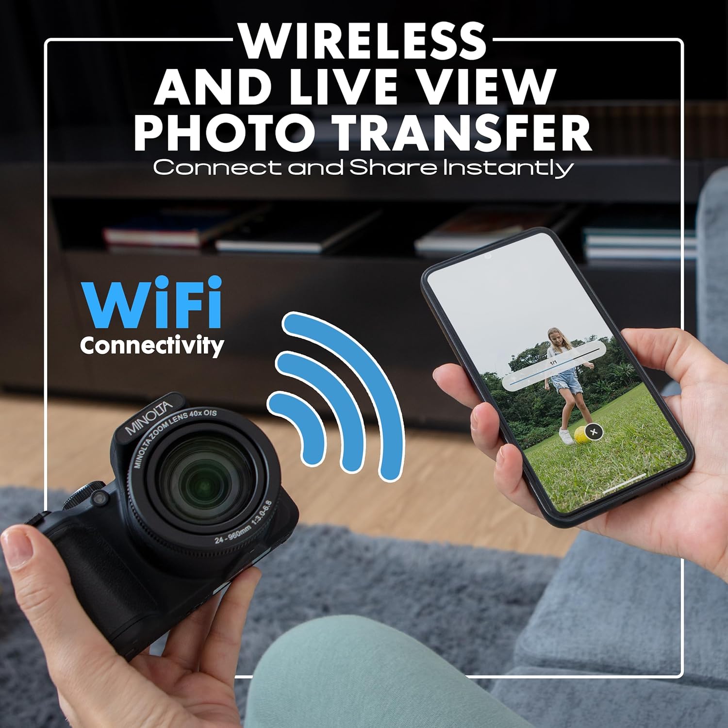 WIFI SHARING WITH SMART APP SUPPORT: Connect to your smartphone or tablet via built-in WiFi and transfer photos or videos instantly. Use the app for remote control shooting perfect for group shots and on-the-go content creation.