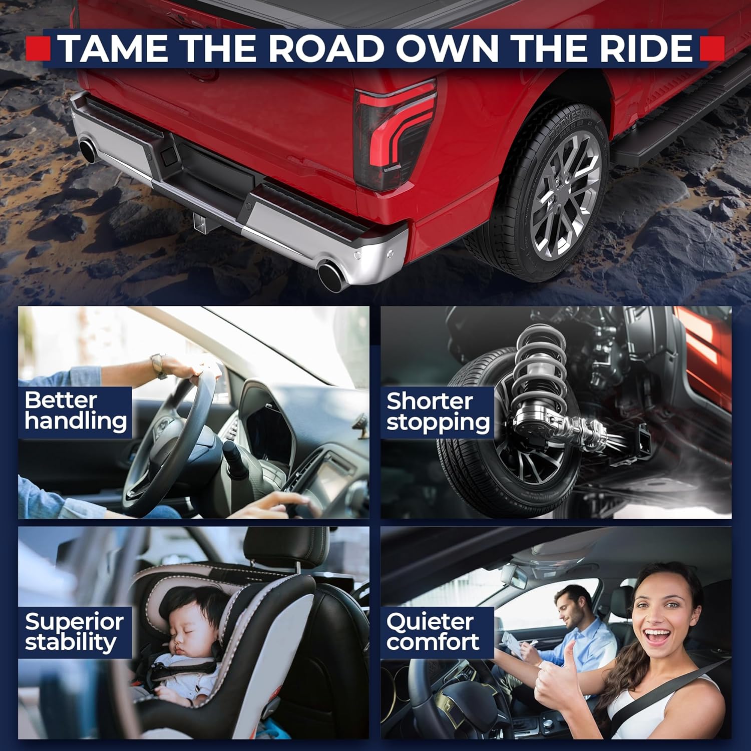 [Longer-lasting]:Our Complete Shock Assembly features high-strength springs a rust-proof coating and reinforced welds. Every unit undergoes rigorous inspection to ensure superior craftsmanship built to withstand extreme temperatures humid conditions and road debris. The premium top mount resists cracking and aging maintaining durability even after years of heavy useengineered for long-term reliability so you wont need frequent replacements.