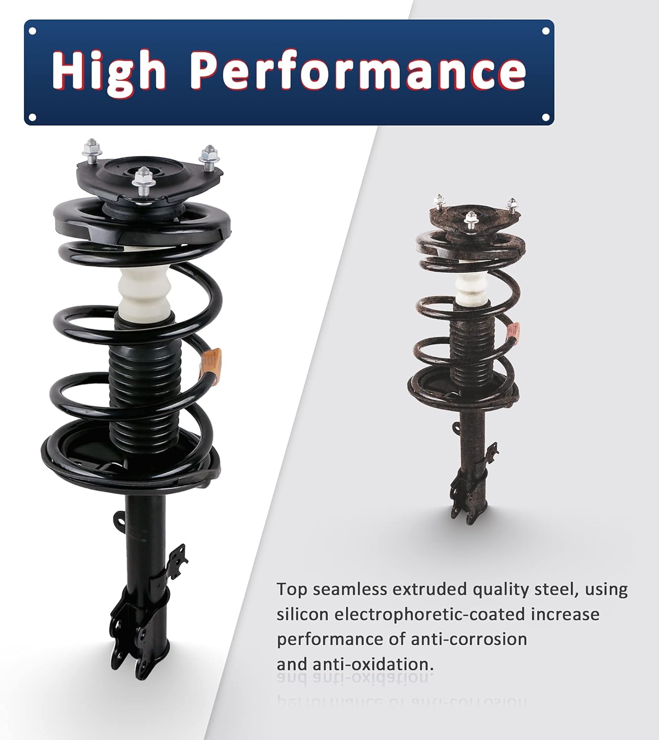 High Performance-- Chrome Piston Rod with OEM Brackets and Mountings prevent leaking issue Seamless sleeves to avoid gliding; The steel coil spring guaranteed safe and comfortable ride; Low vibration with No squeaking noise and longer durability.