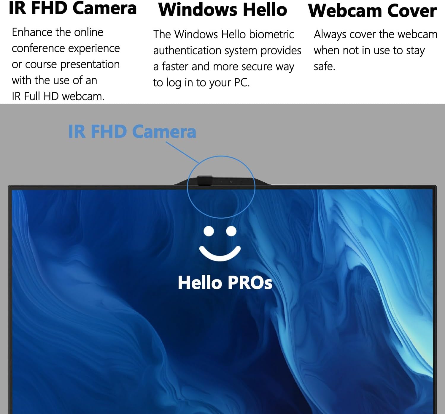 [Tech Specs] 1 x USB 3.2 Type-C 3 x USB 3.2 Type-A 2 x USB 2.0 Type-A 1 x HDMI 1 x DP Port 1 x RJ45 2 x headphone/microphone combo IR FHD Webcam Wi-Fi 6E and Bluetooth Wireless Keyboard & Mouse