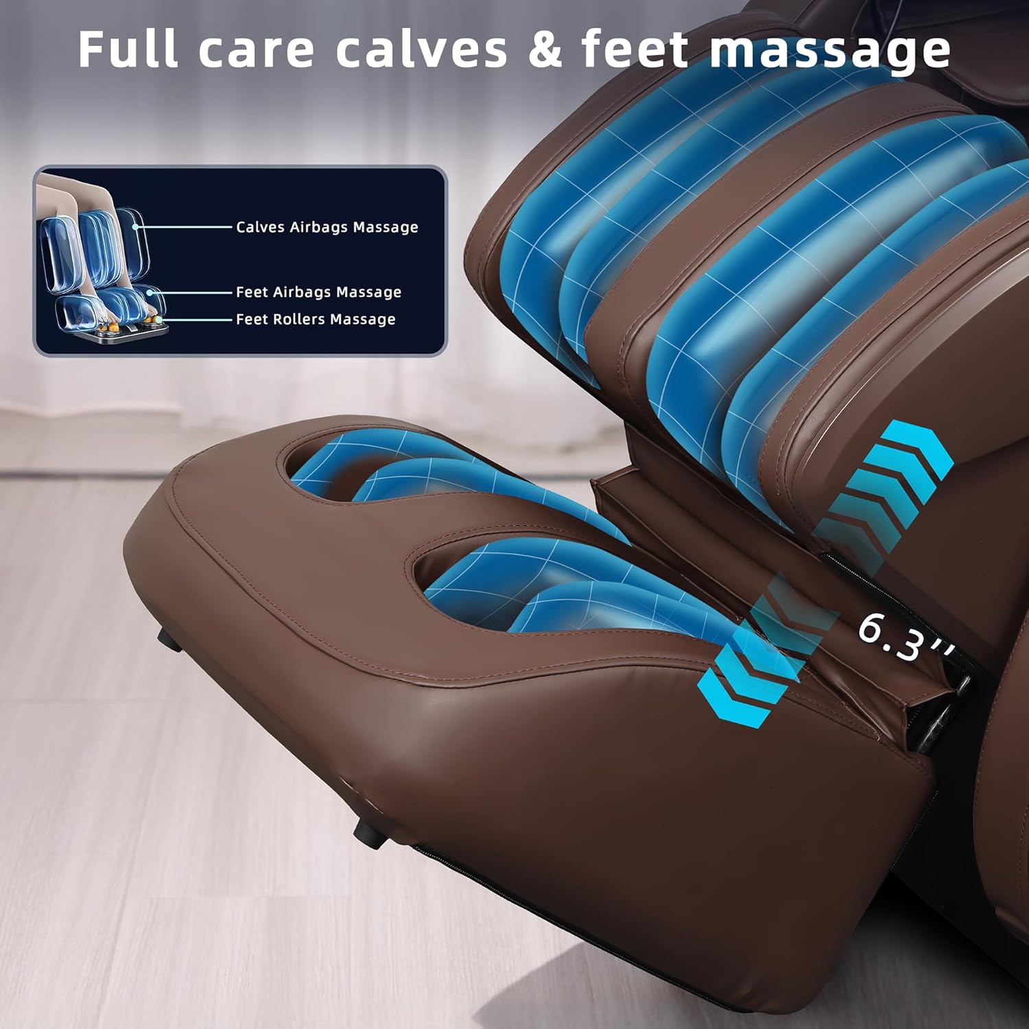 Full-Body Airbag Compression Strategically placed airbags at the shoulders arms waist hips calves and feet provide adjustable compression therapy that improves circulation and relieves fatigue making it the perfect chair for tall men and big and tall massage needs.