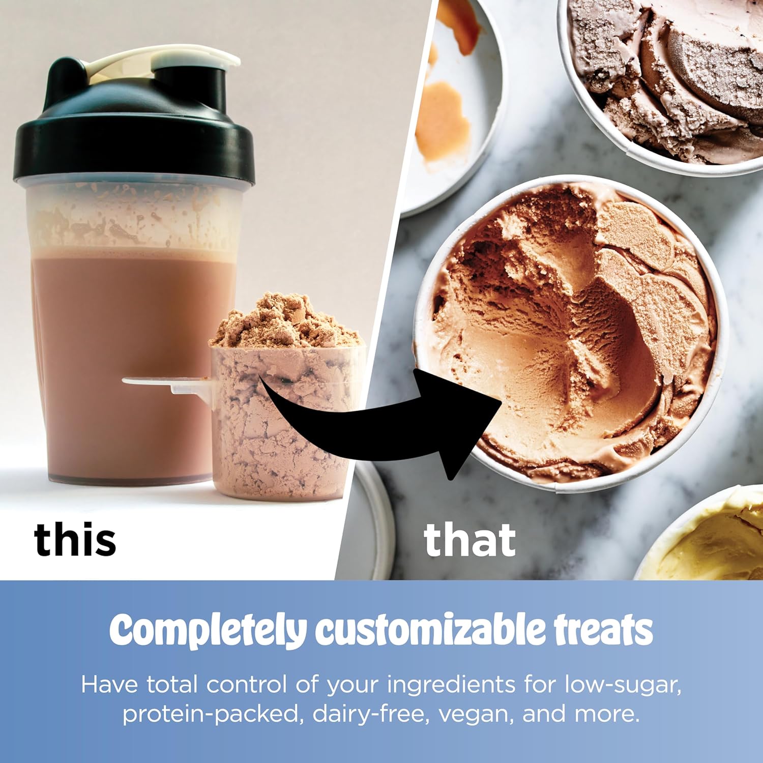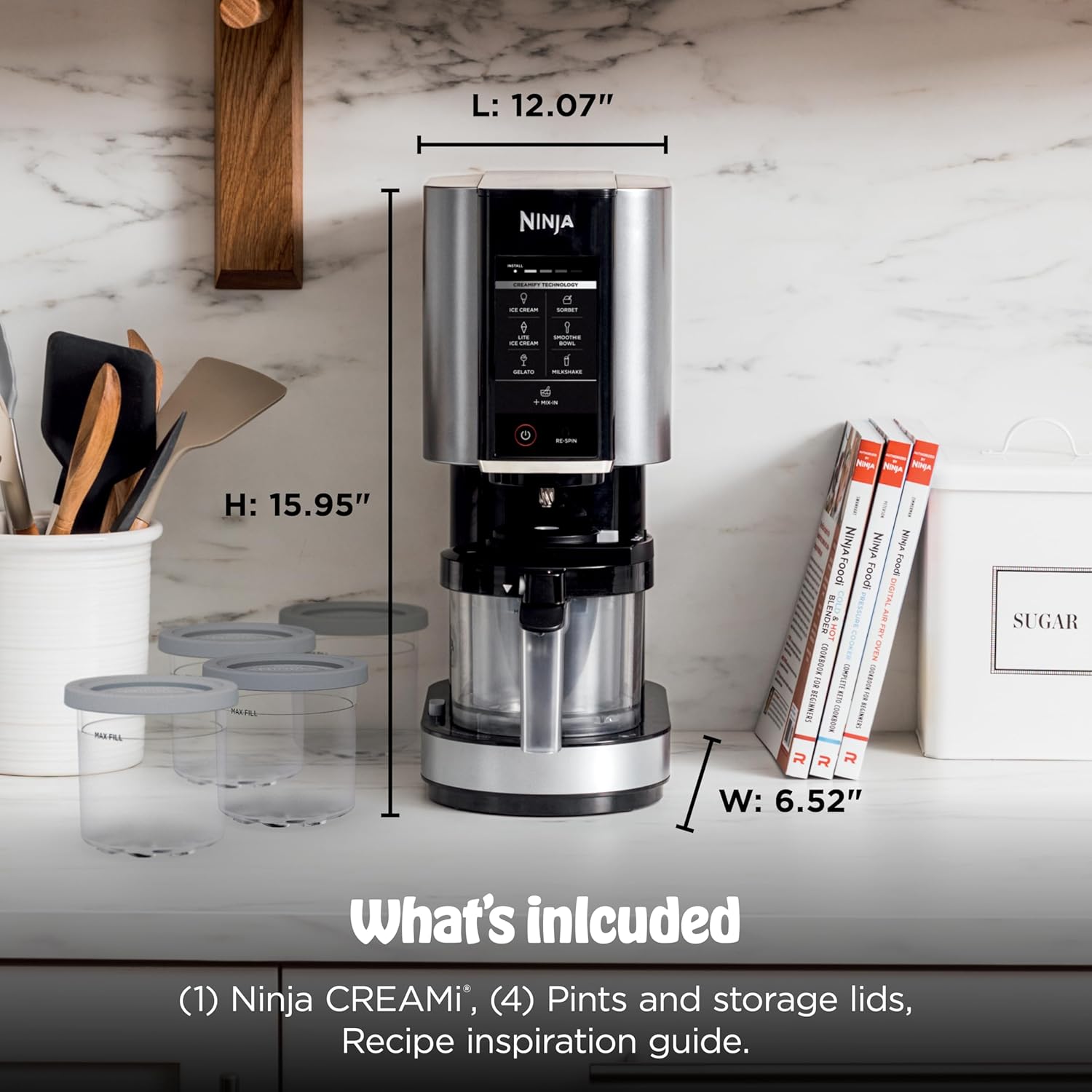 Includes 2 additional reusable CREAMi pint containers and lids to store extra frozen treats made from the ice cream maker.