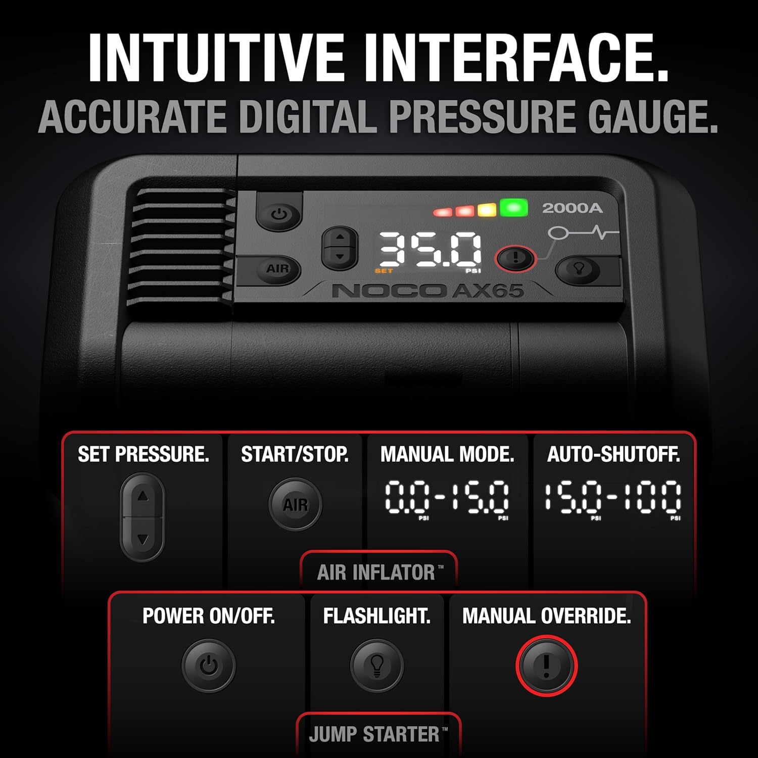 START DEAD BATTERIES Safely jump start dead batteries in seconds with a powerful 2000A lithium jump starter. Designed for gas engines up to 8.0L and diesel engines up to 6.0L it delivers multiple starts per charge with maximum energy every start.