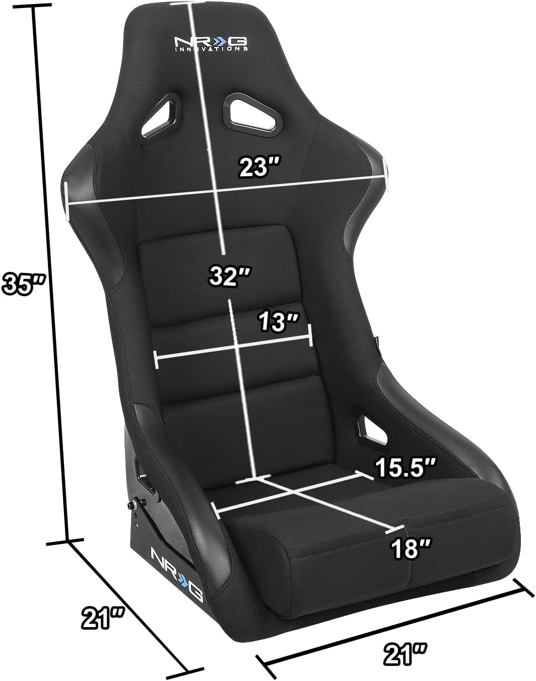 SpecificationThe Bucket Racing Seat Has 23" W Shoulder X 35" H X 18" D Overall Dimension A Large Size Seat only weighs 15~18 lbs with Side Mount Bracket.