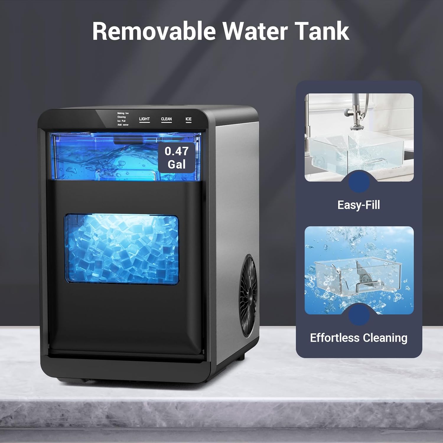 Smart Monitoring with ETL Safety: Designed with a fully automatic control system the nugget ice maker stops making ice when full and reminds you to refill water when needed. It also features compressor overheating protection to extend the machines lifespan. ETL certified for safety and reliability this ice maker offers peace of mind with every use.