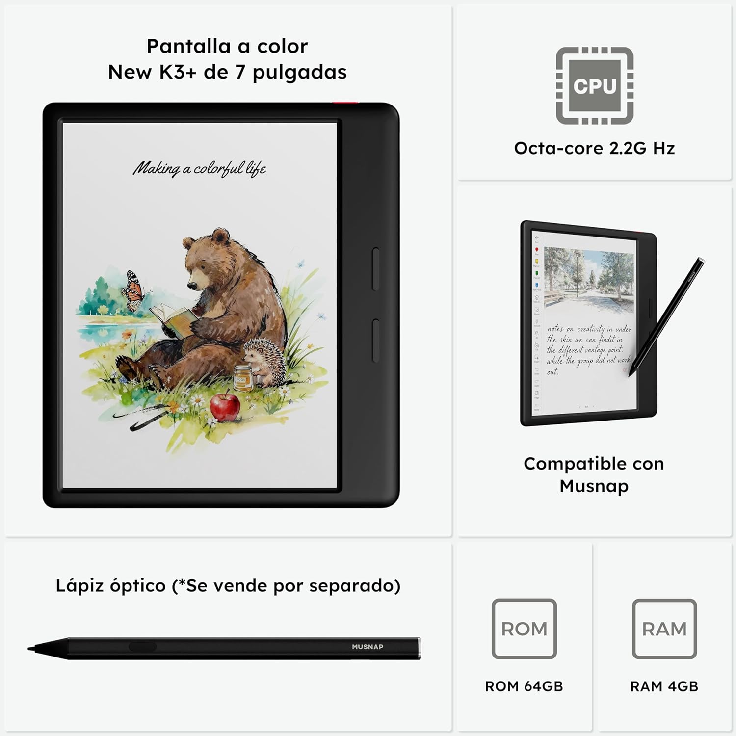 Supports the Bluetooth connectWifi connectUSB connect .Supports 3rd-Party appsSupports Handwriting with Pencil compatibility (sold separately). Stylus Pen not included; pen must be purchased separately.