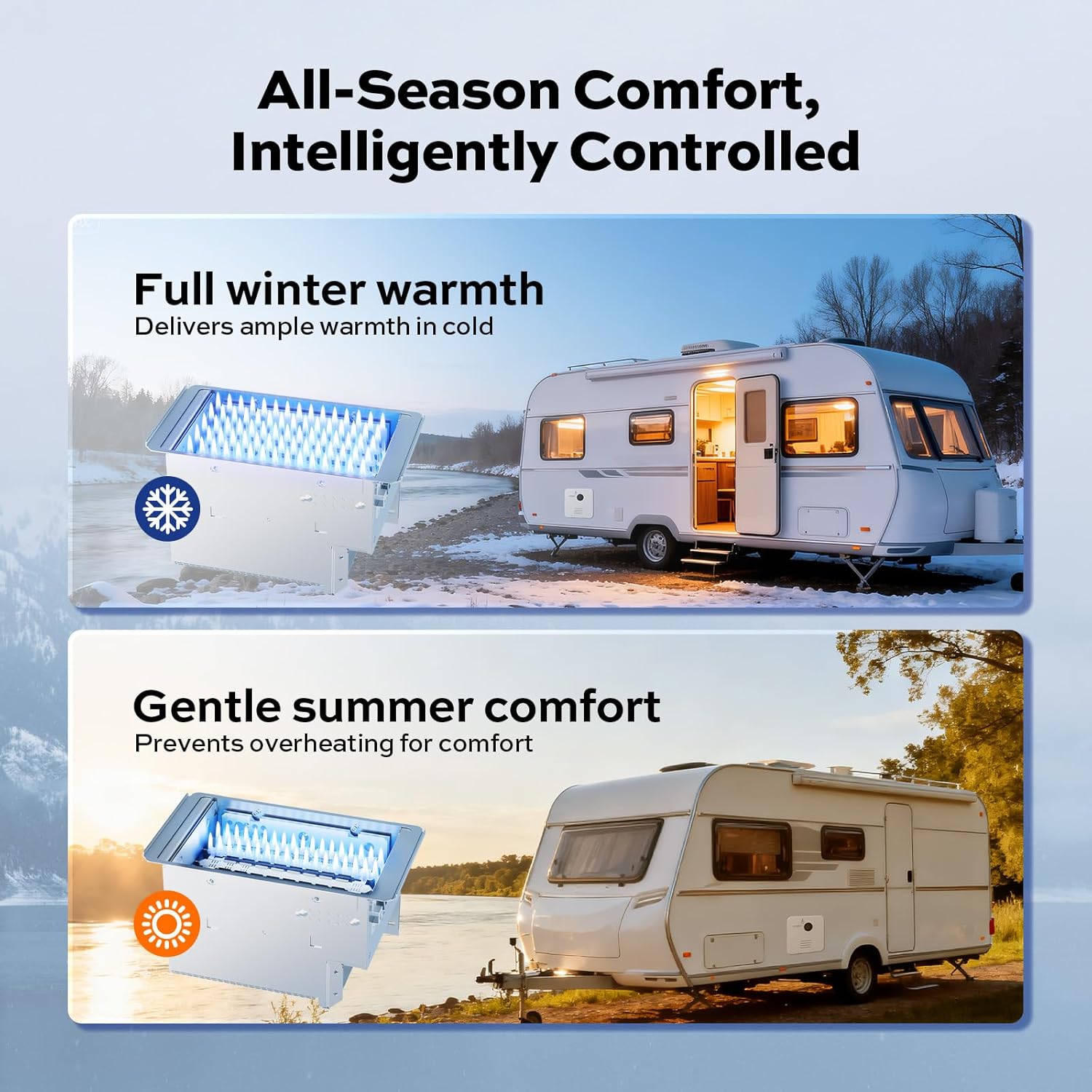 - : Equipped with oxygen-free copper heat exchangers and brushless DC fans it adapts to high altitudes ensuring smooth operation even when you drive the RV to the Denver Plateau at an altitude of 9 800 feet. Staged combustion technology maintains consistent temperatures by minimizing cold spots and scalding while conserving precious propane resources during RV travel. Enjoy endless hot watersimply add cold water to achieve your desired temperature