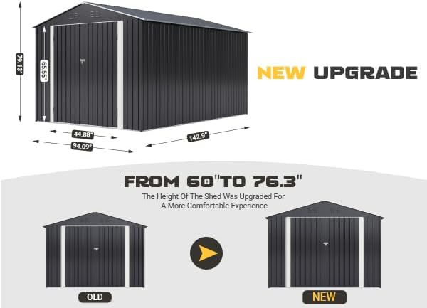 Ample and Organized StorageSpanning dimensions of 142.9"D x 94.09"W x 79.13"H the shed by offers expansive storage neatly accommodating your tools and outdoor essentials.
