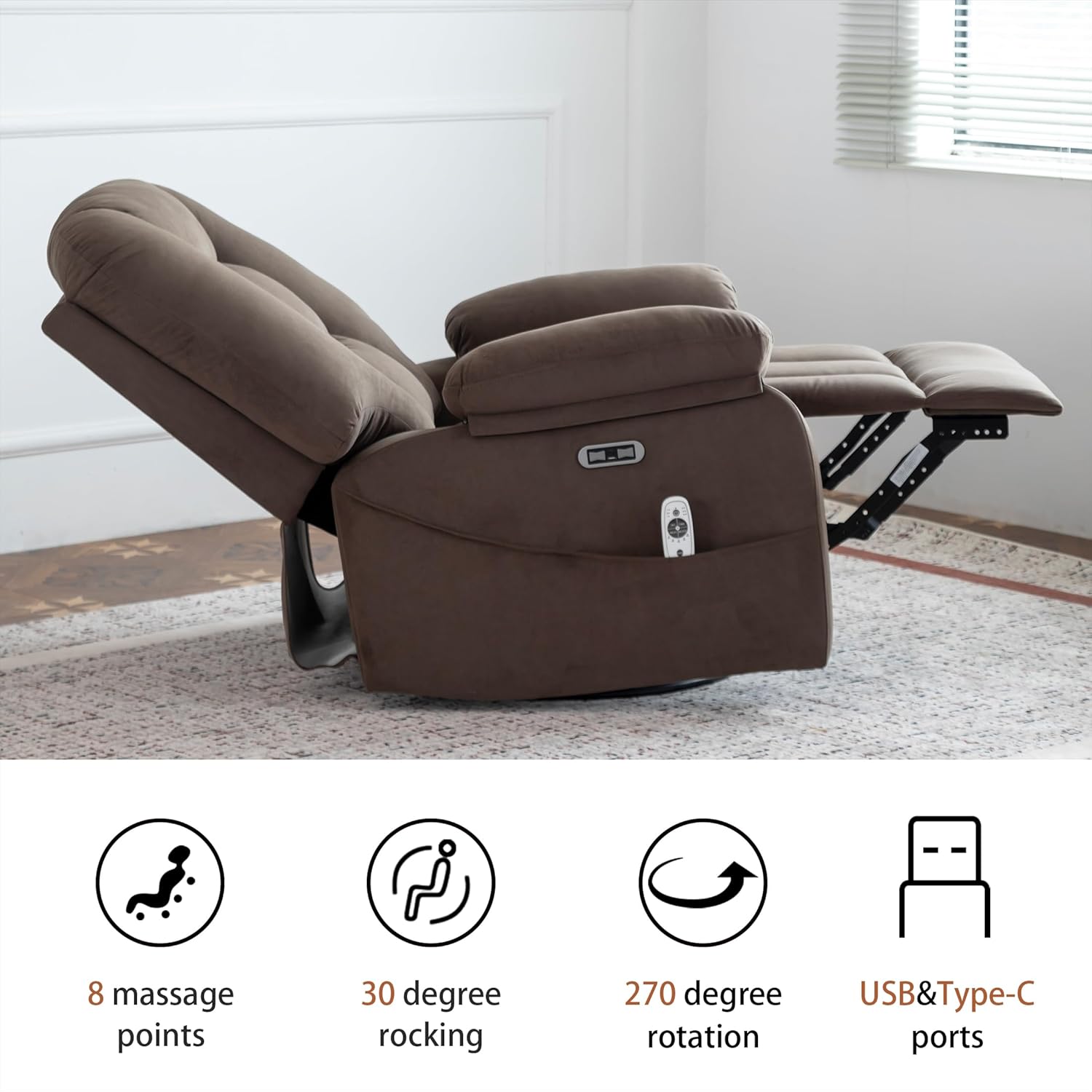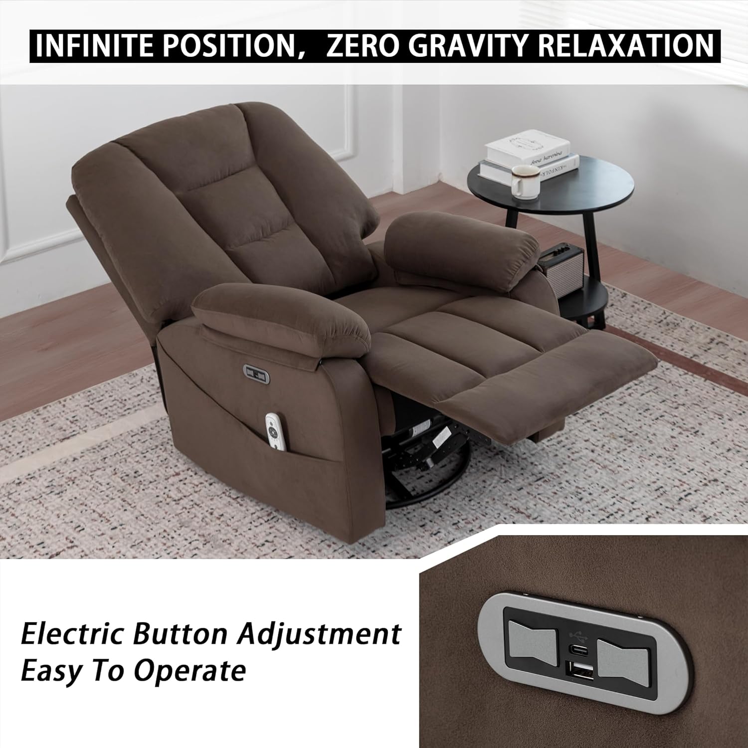 USB & Type-C Charging Ports Built In:Keep your devices powered up without ever leaving your chair. Integrated USB and Type-C ports let you charge phones, tablets, or even a Kindle while you relaxno more getting up to find an outlet.