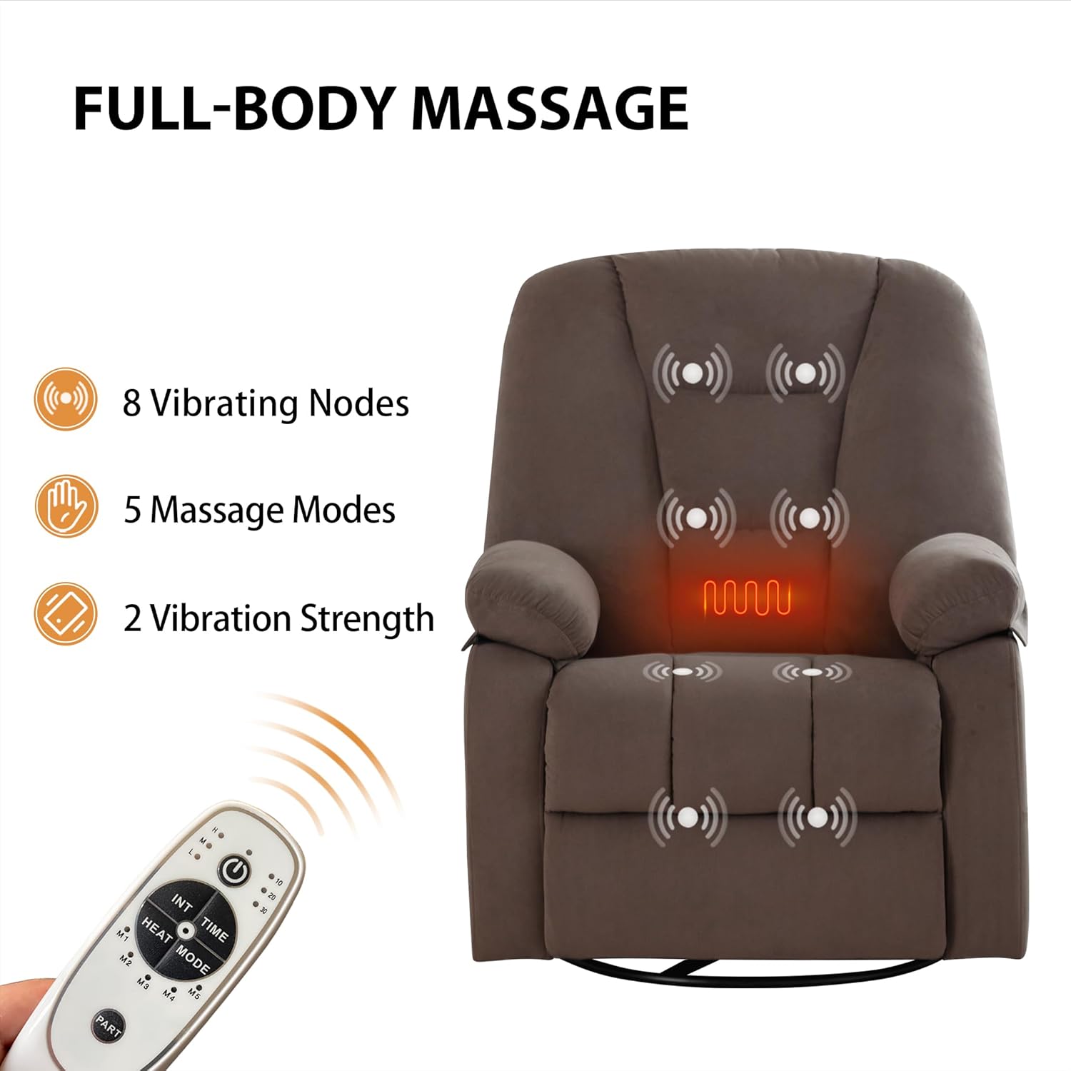 Soothing Heat & Massage at Your Fingertips:Melt away stress with 5 massage modes and 3 intensity levels, all easily controlled with a convenient remote. Built-in heating adds extra comfort to soothe sore muscles, perfect for movie nights or post-work relaxation.