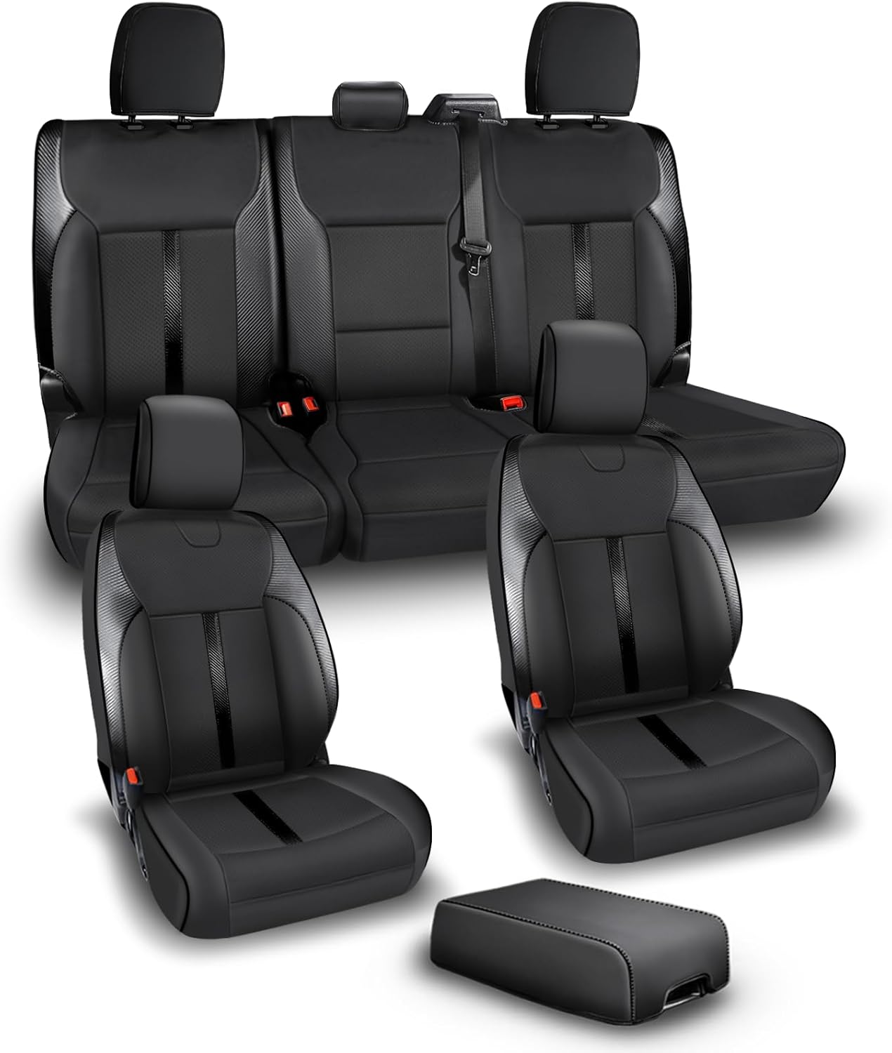 UPGRADE F150 INTERIOR: Our truck seat covers for ford f150 was made of premium faux leather that able to provide long-lasting durability. Its waterproof and easy to clean or maintain making them ideal for use in all weather conditions and ensuring that your cars seat will look as good as new for years to come. This is a perfect solution to upgrade the look and feel of your F150 and protect original seat from everyday wear and tear. Carbon fiberstyle texture enhances interior appearance and adds a sporty look.