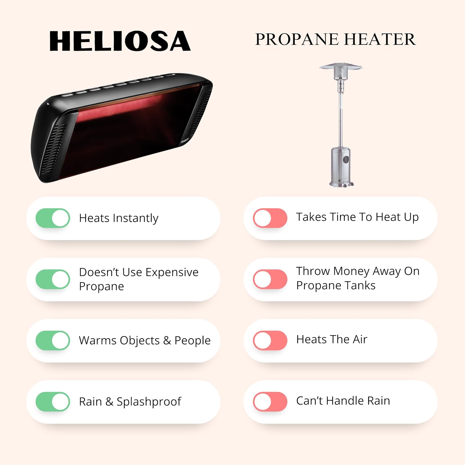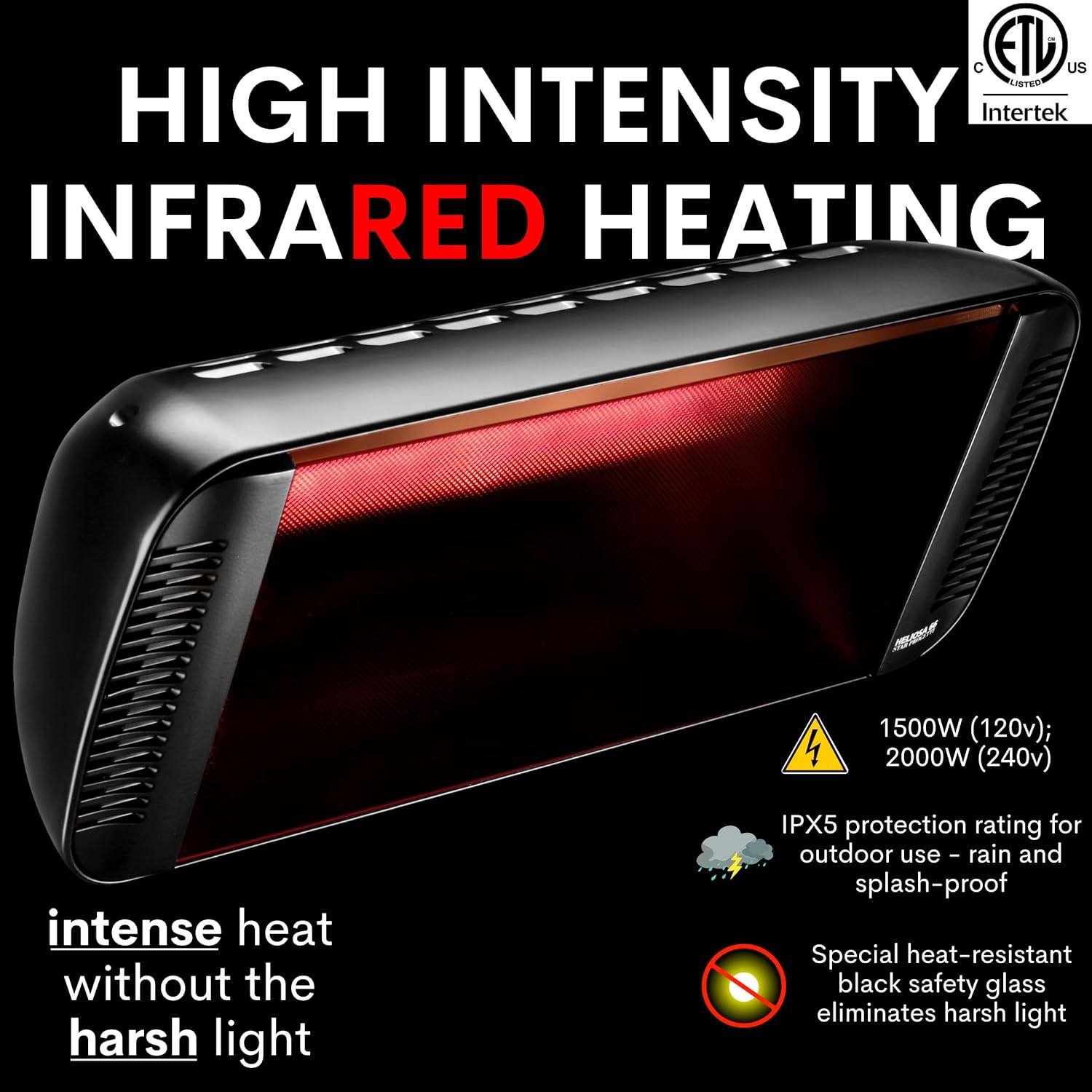 WATER RESISTANT- The IPX5 protection rating means the is rated for outdoor use. The high-intensity infrared heater can withstand rain and harsh outdoor elements.