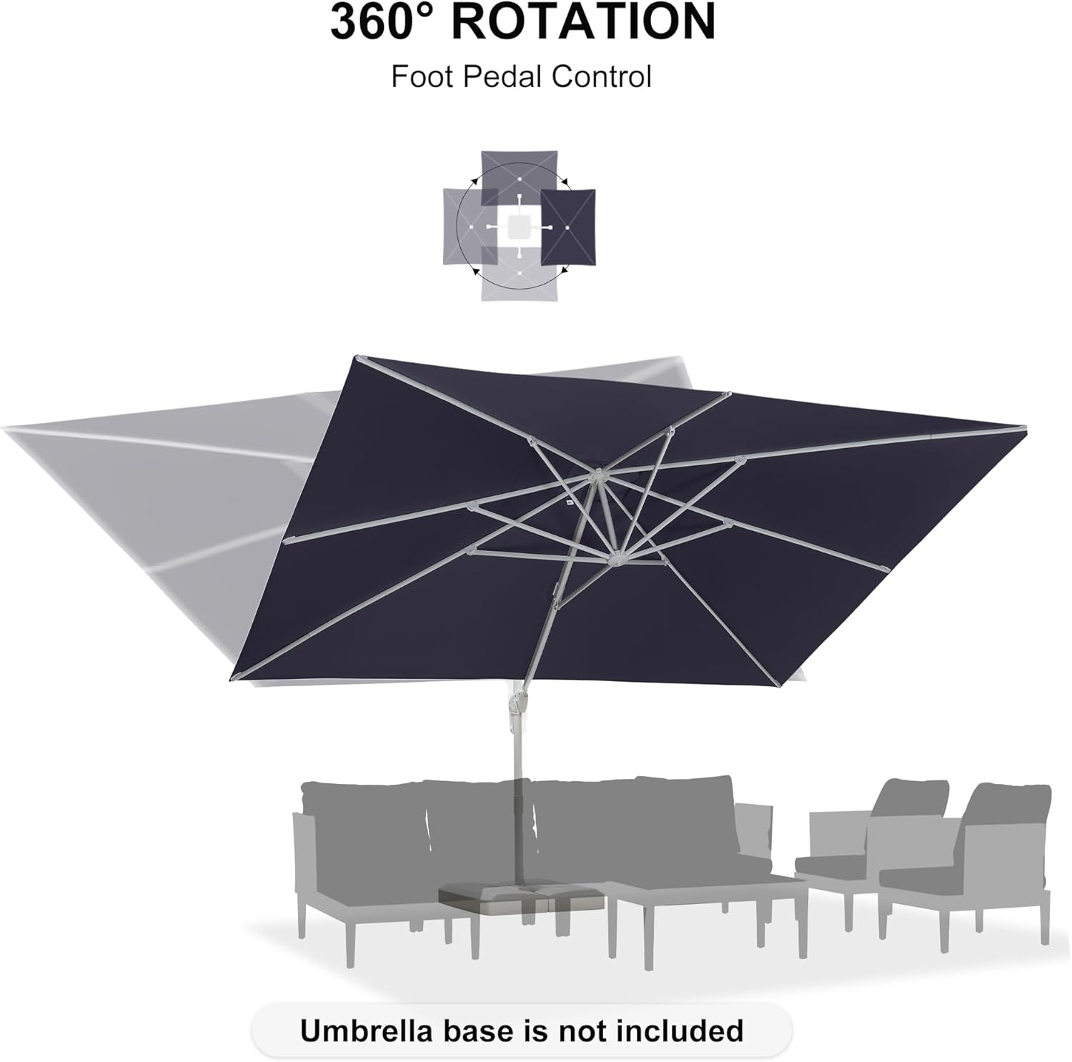Rotation & Tilt: The crank system of the patio umbrella enables easy adjustment of the canopy height and angle; simply press the foot pedal and twist the pole to rotate the umbrella 360 horizontally