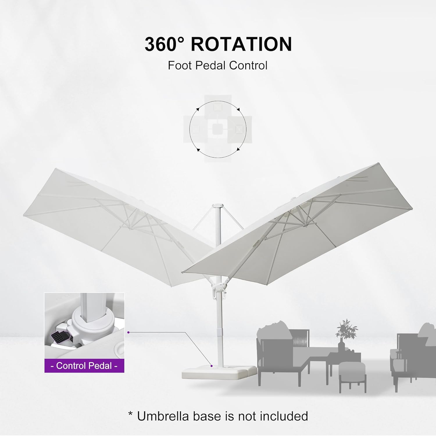 Rotation & Tilt: The crank system of the patio umbrella enables easy adjustment of the canopy height and angle; simply press the foot pedal and twist the pole to rotate the umbrella 360 horizontally