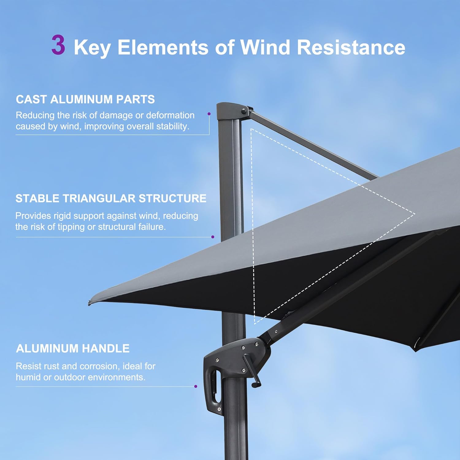 ROTATION & TILTING: This cantilever umbrella can be rotated 360 degrees easily in addition the 6-level adjustable tilt operation system also makes tilting the deck umbrella effortless