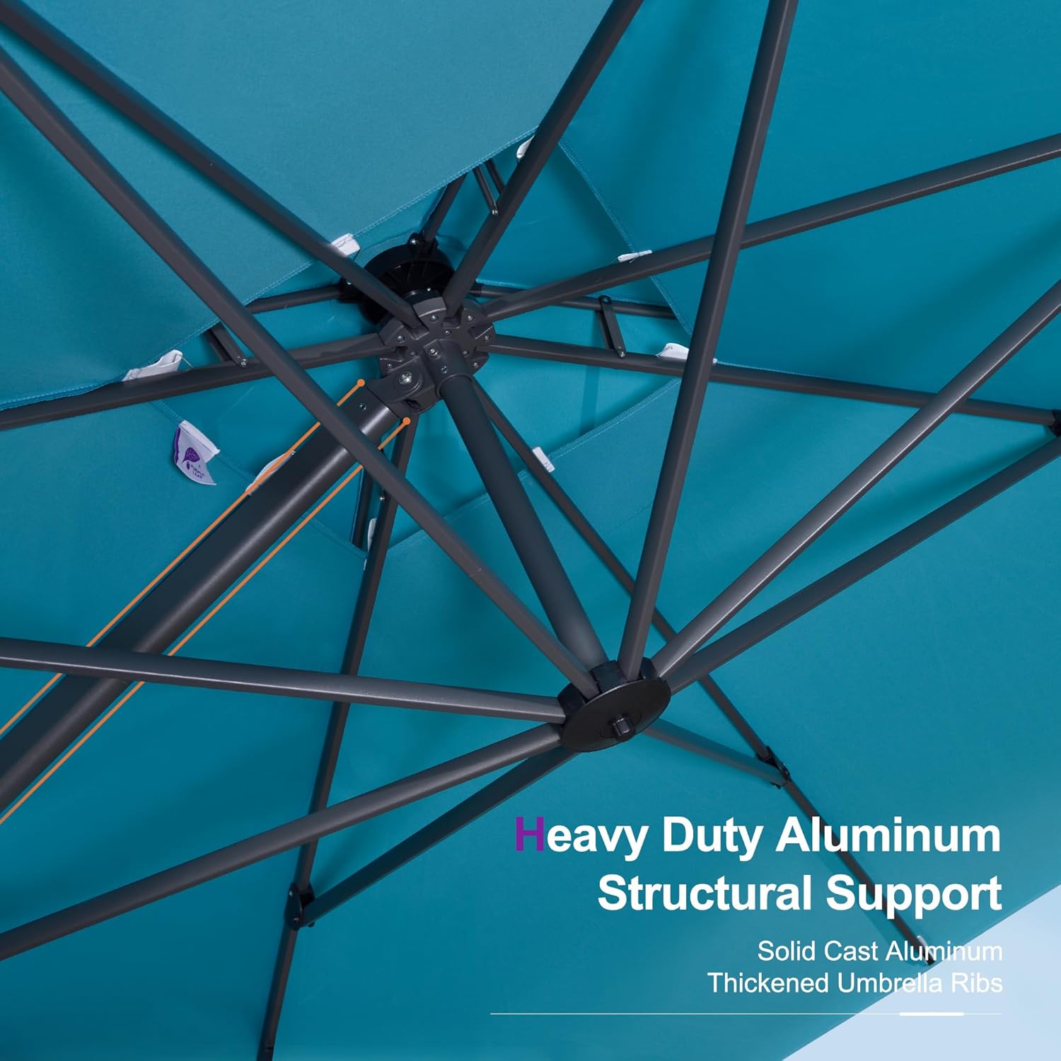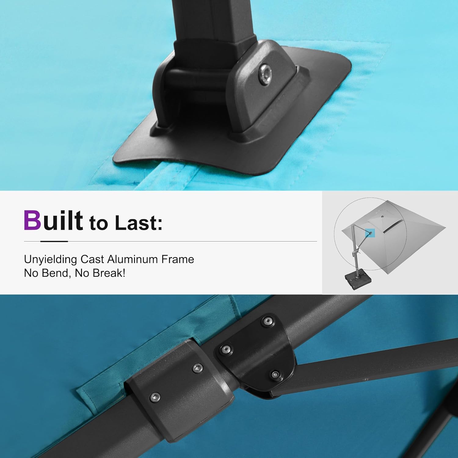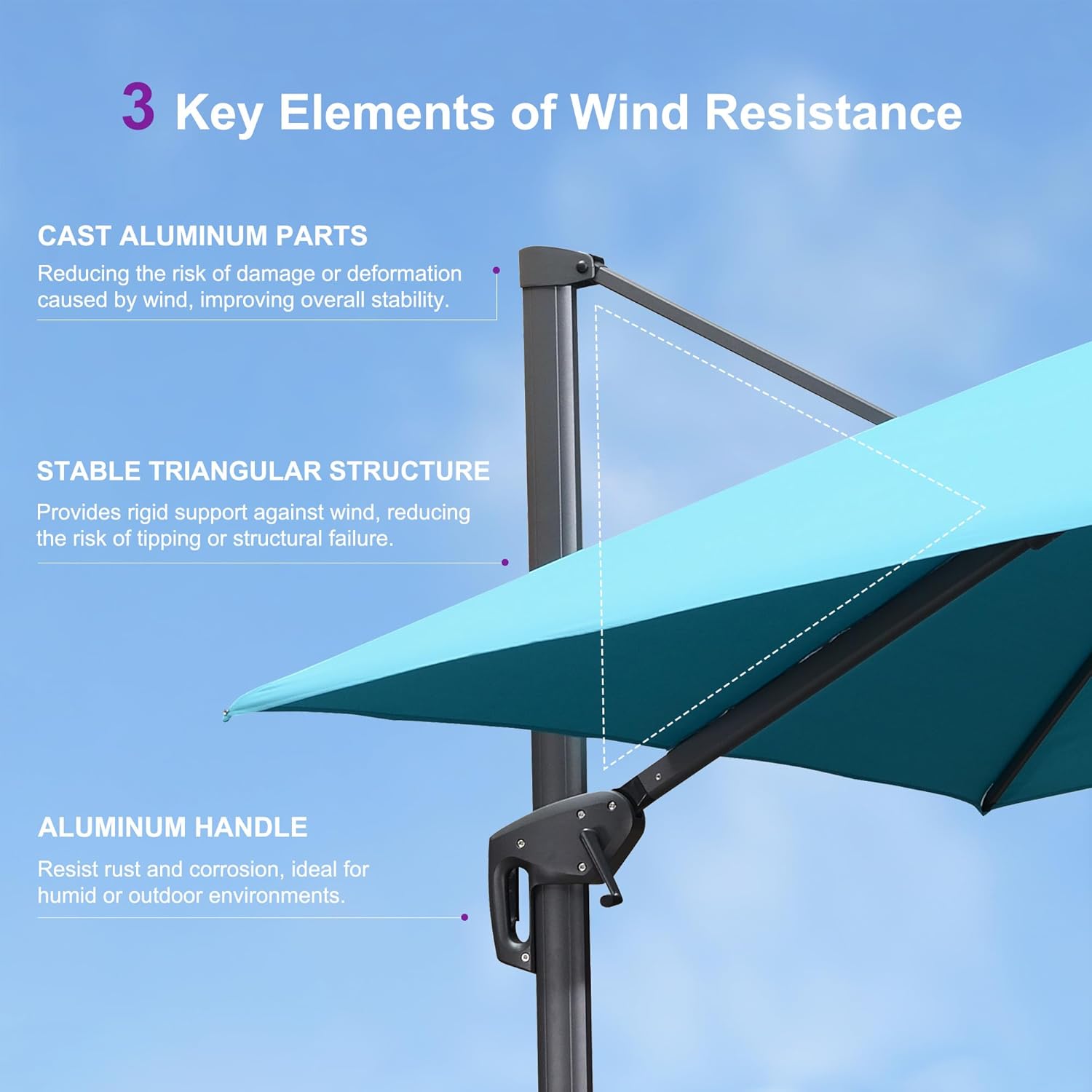 ROTATION & TILTING: This offset umbrella can be rotated 360 degrees easily, in addition, the 6-level adjustable tilt operation system also makes tilting the patio umbrella effortless