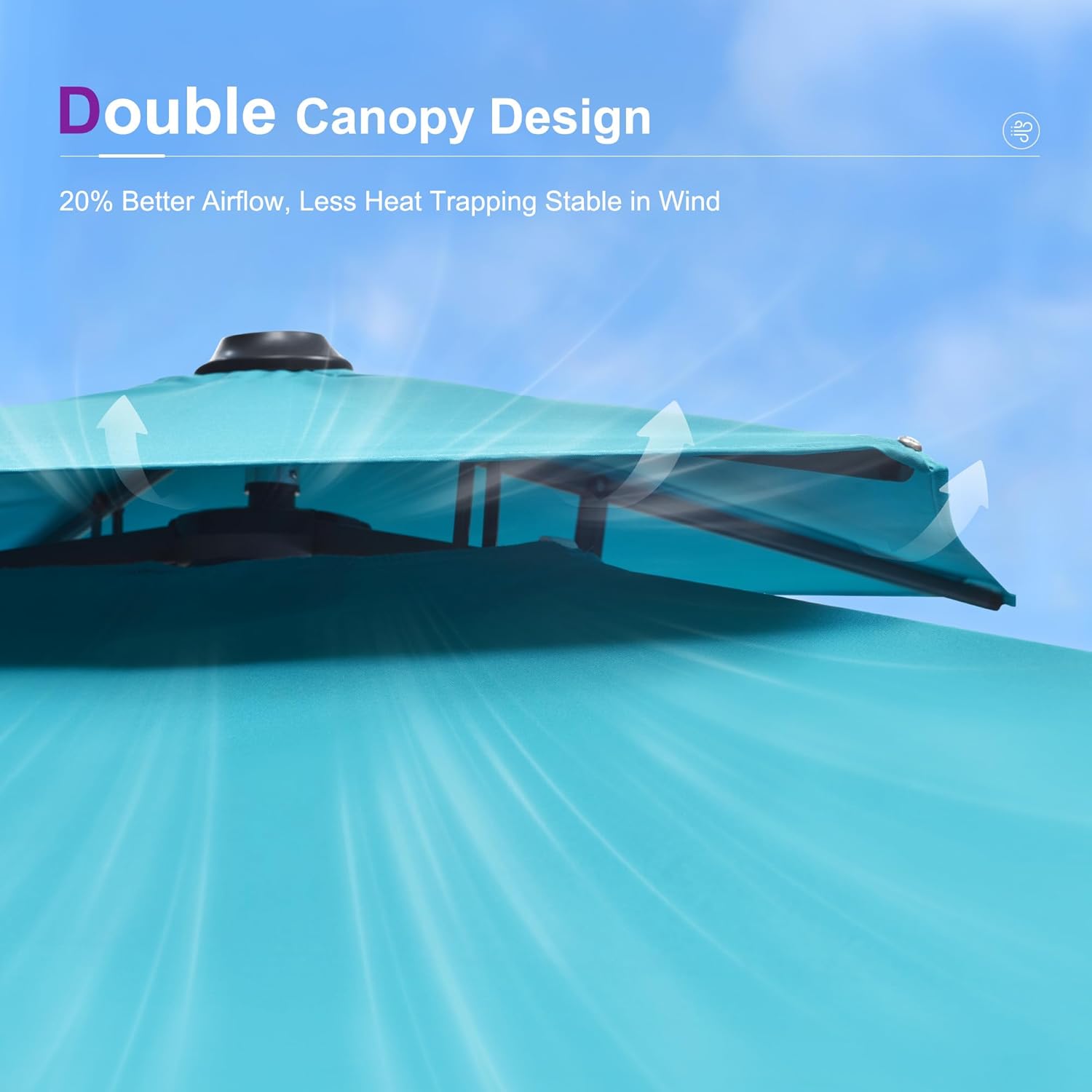 DOUBLE TOP DESIGN: Double top air vent to allow enough air flow and heat venting, make your patio umbrellas stay stable against windy condition