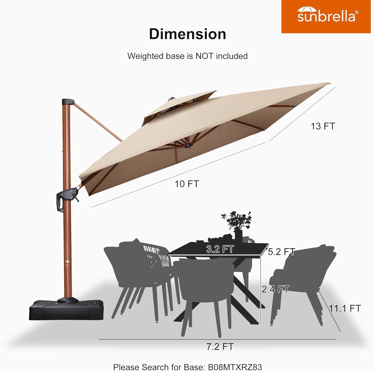 • 10' X 13' Patio Large Cantilever Umbrella Double Top Deluxe Outdoor Rectangle Wood Pattern Umbrellas Offset Umbrella Heavy Duty Sun Umbrellas for Garden Deck Pool Heather Beige