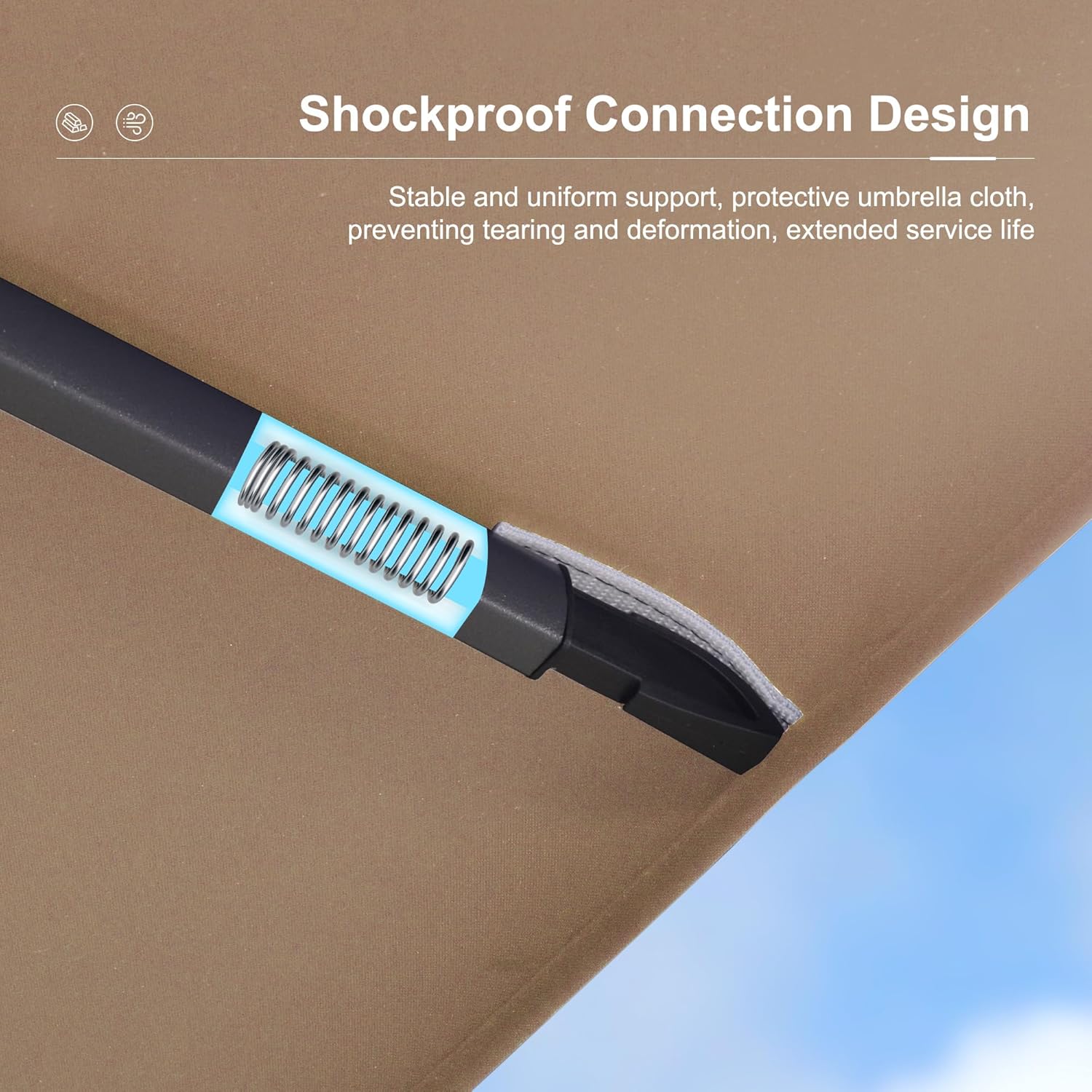 STURDY & DURABLE: All-aluminum umbrella bones and 8 heavy-duty ribs anti-oxidation spray painted resist corrosion and rust