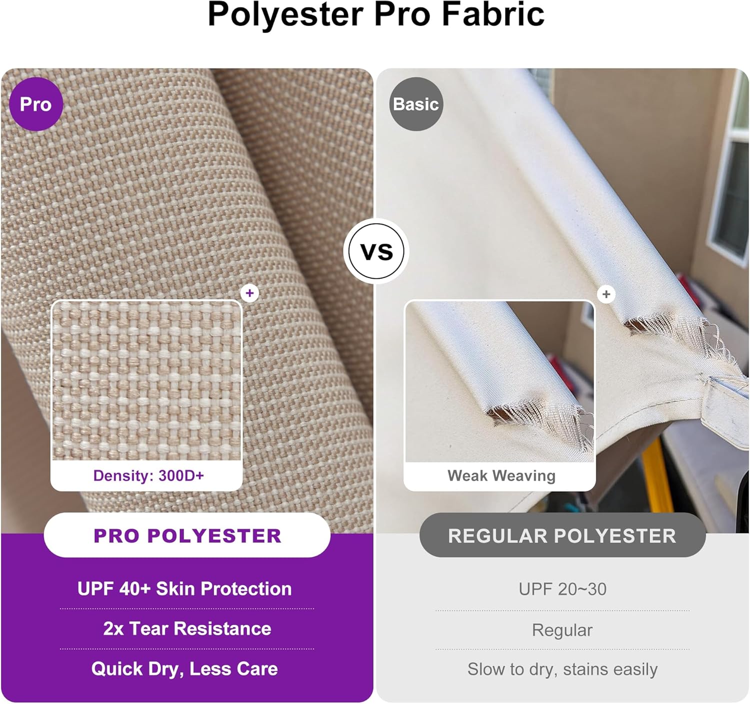 Premium Polyester Pro Canopy - Features 2X tear-resistant fabric with 3 years fade resistance quick-drying and easy to clean. Withstands sun rain and wind while resisting wrinkles and shrinkage for lasting durability.