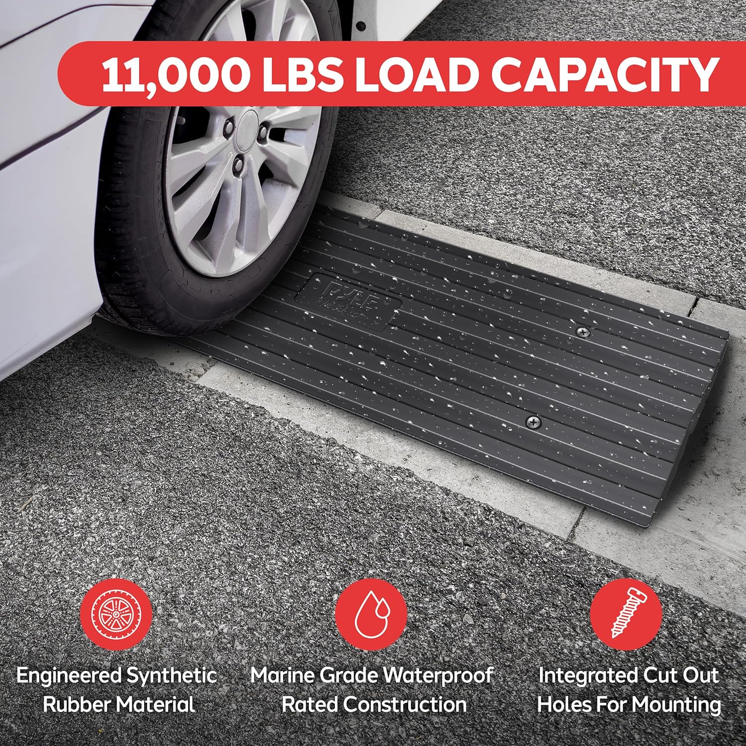 PREFORMED HOLES: These lightweight outdoor threshold car ramps for low cars can be permanently installed in high traffic areas using the integrated mounting holes at the edges of the ramp. Integrated water / cable channel Sold as pair