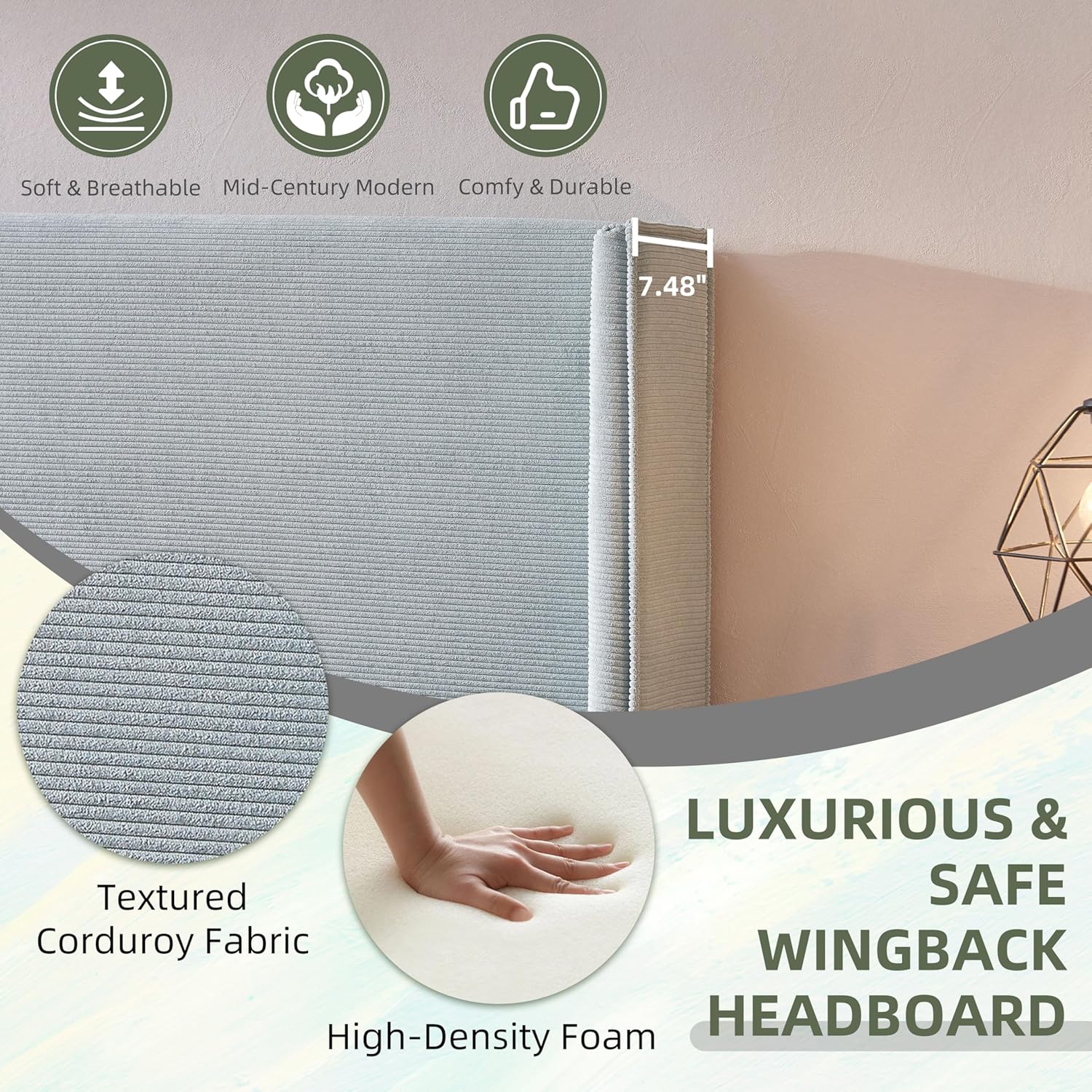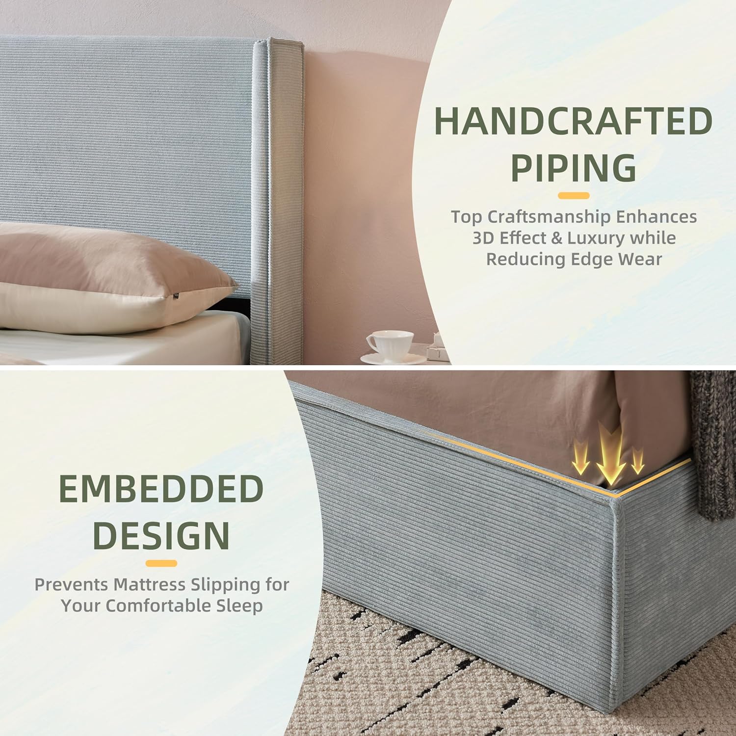 Luxurious Corduroy Upholstery: Sink into comfort with the corduroy queen bed frame, wrapped in plush corduroy fabric and filled with high-density foam. This blend creates a cozy, supportive surface for lounging while resisting wear over time