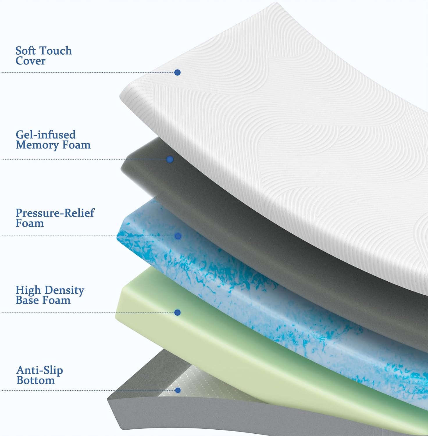 Zero Motion TransferSay goodbye to sleep disturbances with our advanced motion isolation system. The high-density foam layers work together to absorb and contain movement, ensuring your partner's tossing and turning won't disrupt your rest. Enjoy truly undisturbed deep sleep throughout the night, whether you share your bed or sleep alone.