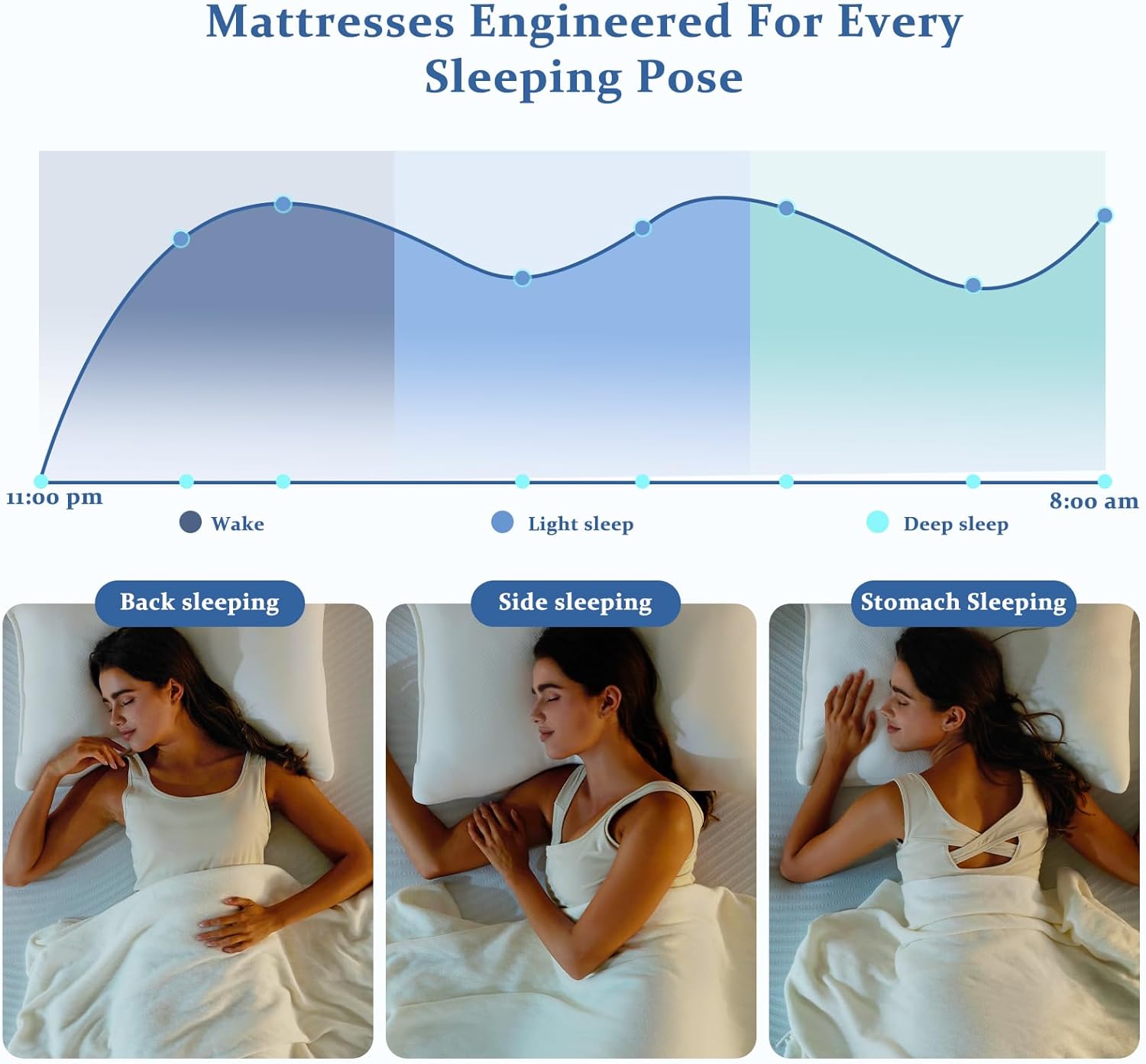 Targeted Pressure ReliefDiscover perfect pressure relief with our body-contouring memory foam that adapts to your unique shape. Specially designed to cushion shoulders, hips, and back while maintaining proper spinal alignment. The zoned support system provides customized comfort for every sleeping position, helping you wake up free from aches and pains, ready to conquer your day.