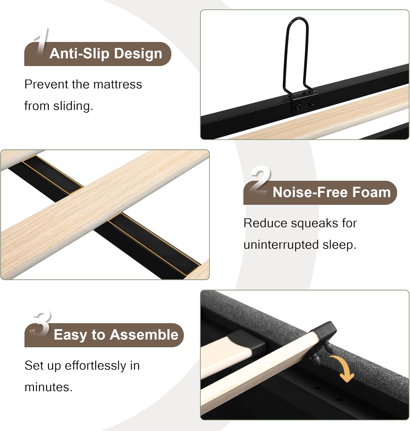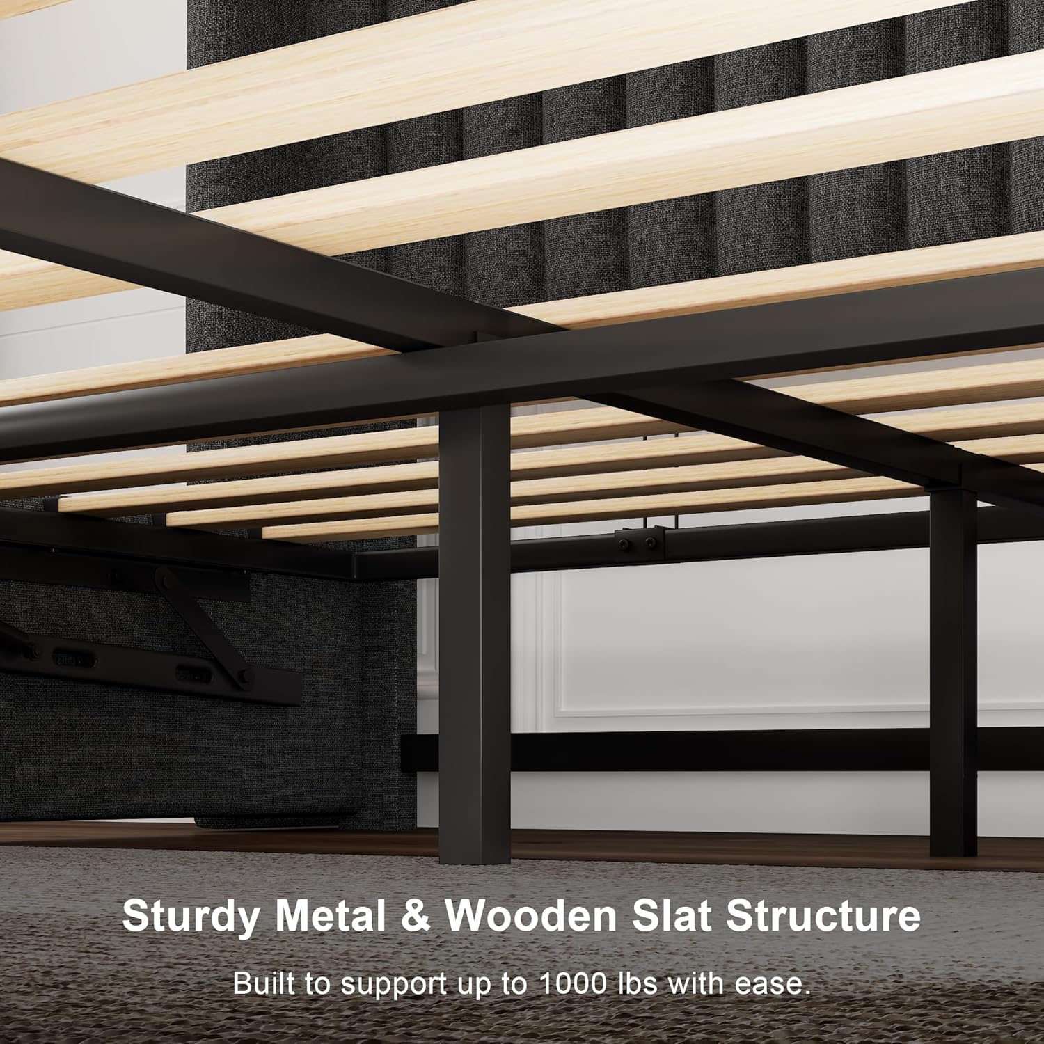 Heavy-Duty Frame: Engineered with industrial-strength materials our bed supports up to 1000lbs without box springs. Reinforced joints and solid legs guarantee stability for all mattress types. Built to last through years of daily use without sagging or squeaking