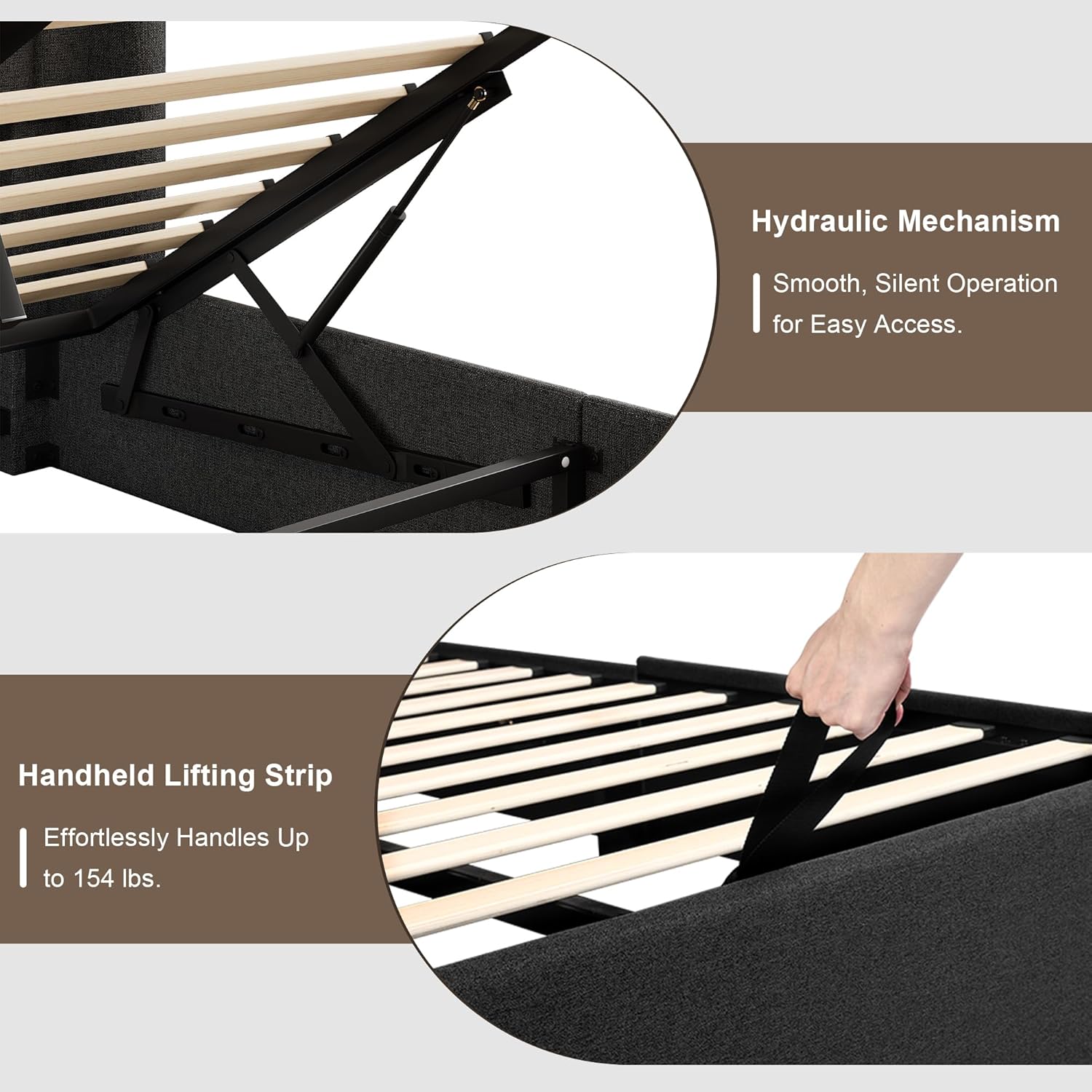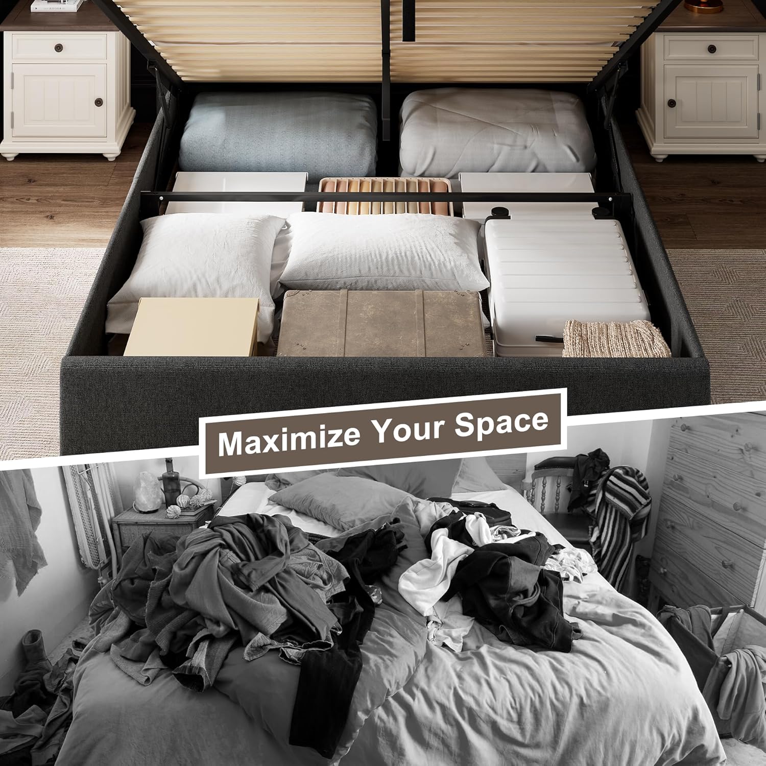 Massive Hidden Storage: Maximize bedroom space with expansive under-bed storage. The hydraulic lift design creates room for bulky seasonal items extra bedding or luggage while keeping your space clutter-free. Perfect for apartments small homes or minimalist lifestyles