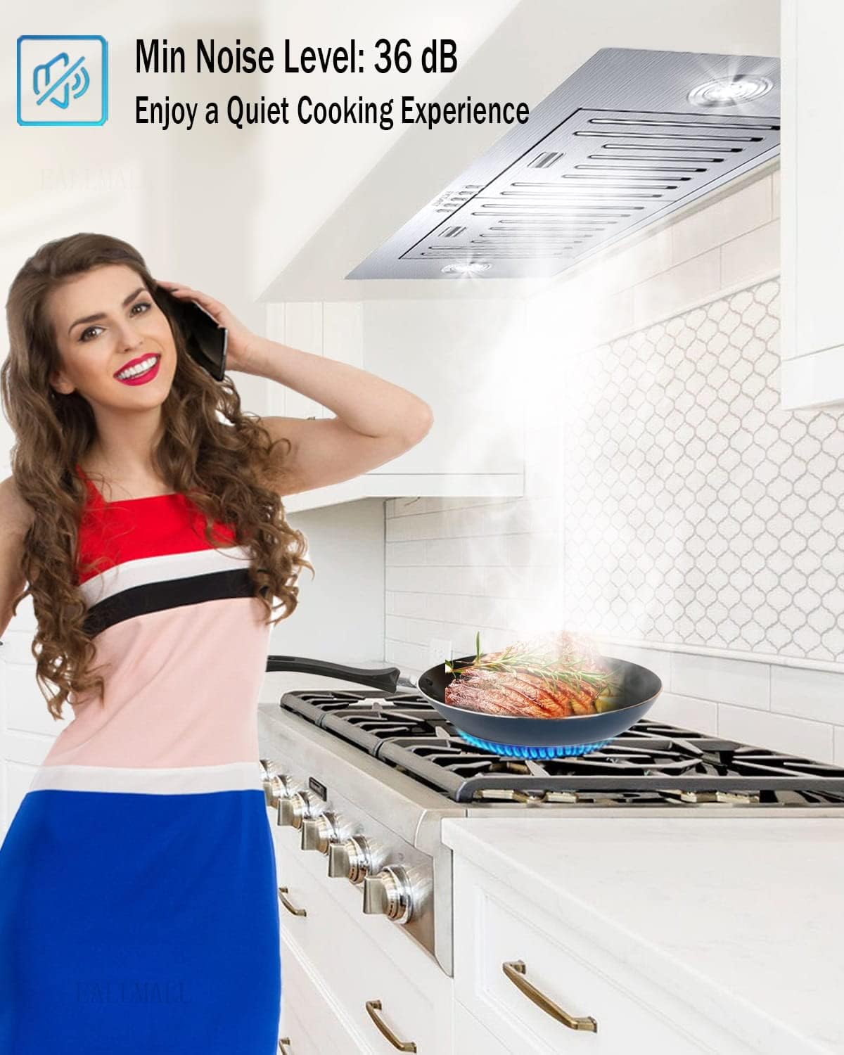 QUIET OPERATION: The original motor in this rang hood insert was designed with multiple noise reduction technologies. The generated noise level is as low as 37 dB and the soft tones and low volume make cooking more enjoyable and comfortable.Fall in love with cooking!