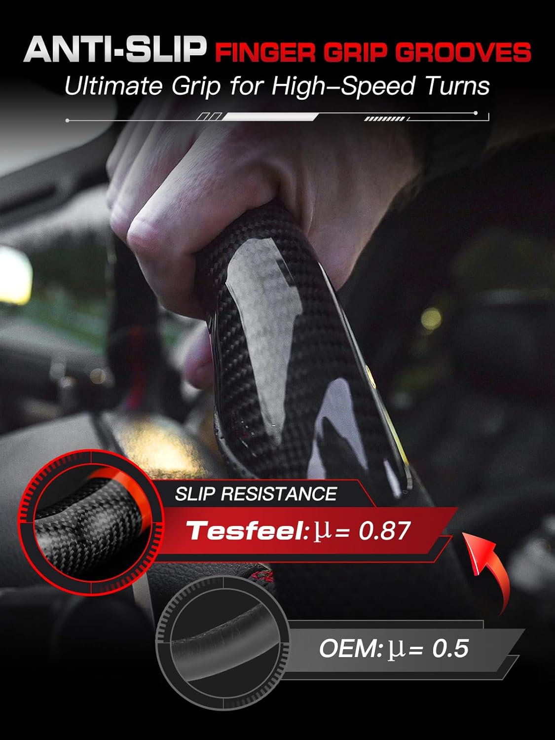 100% Authentic 3K Real Carbon FiberConstructed from 100% authentic 3K real carbon fiber this premium carbon fiber steering wheel features a high-gloss epoxy coating for superior heat resistance. Unlike hydro-dipped alternatives our real carbon fiber steering wheel delivers a distortion-free symmetrical weave ensuring the wheel remains lightweight and maintains its genuine luster for years.
