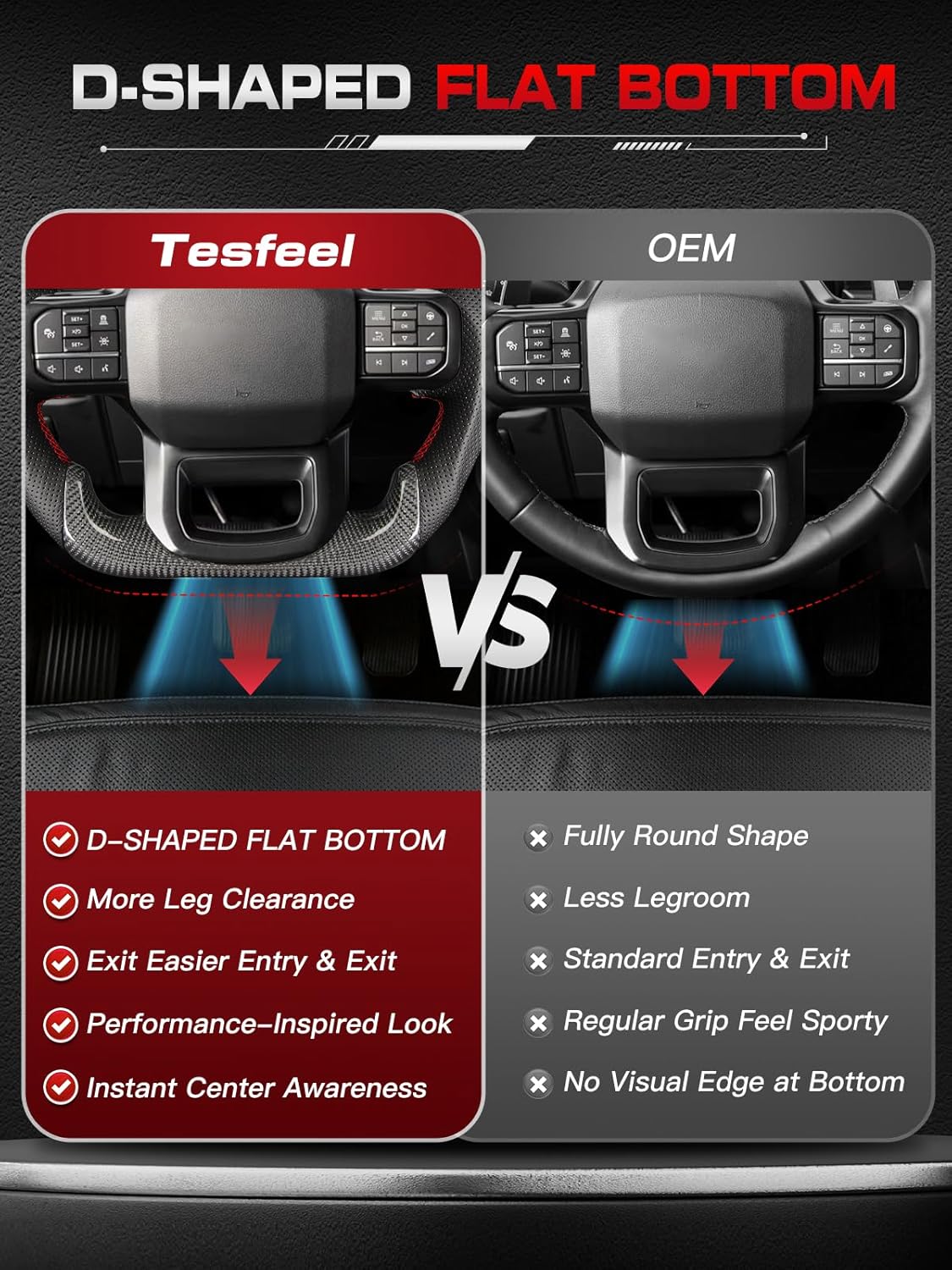 D-Shape Ergonomics for Improved LegroomThe flat-bottom D-shape design significantly increases cabin legroom making it easier to enter and exit the driver's seat. The ergonomic contours are designed to reduce steering fatigue during long-haul towing or daily commutes while the open design ensures an unobstructed view of the digital instrument cluster.