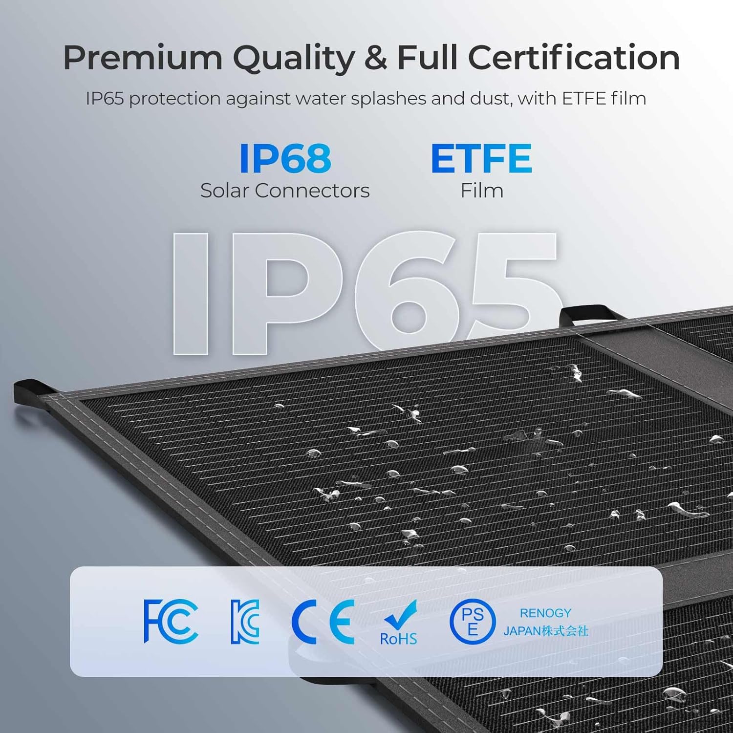 UL 61730 CERTIFIED FOR SAFETY 400w portable solar panel is rigorously tested and certified to UL 61730 standards along with additional electrical chemical and environmental assessments such as CE and RoHS compliant FCC Manufactured in a Certified ISO 9001 Facility CA65 PSE. Shop with confidence knowing your safety is our priority.