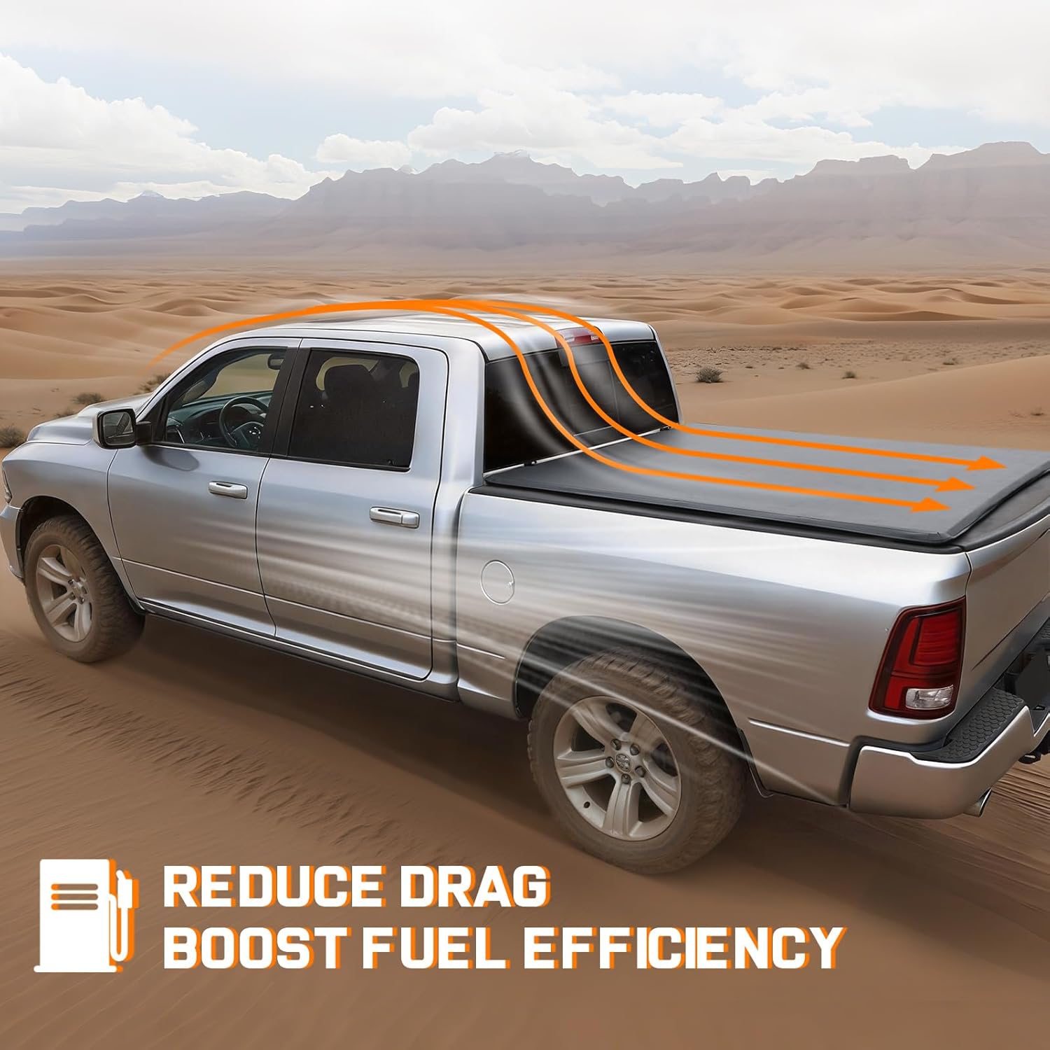 REDUCE NOISE & BOOST FUEL EFFICIENCY: With its streamlined contour this tonneau cover ram 1500 cuts down on wind resistance. That means less road noise at highway speeds and improved aerodynamics to help increase fuel efficiency.