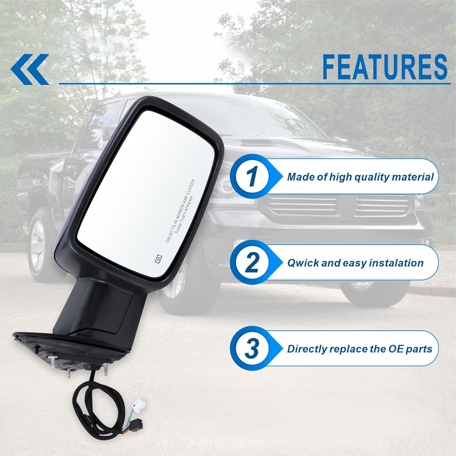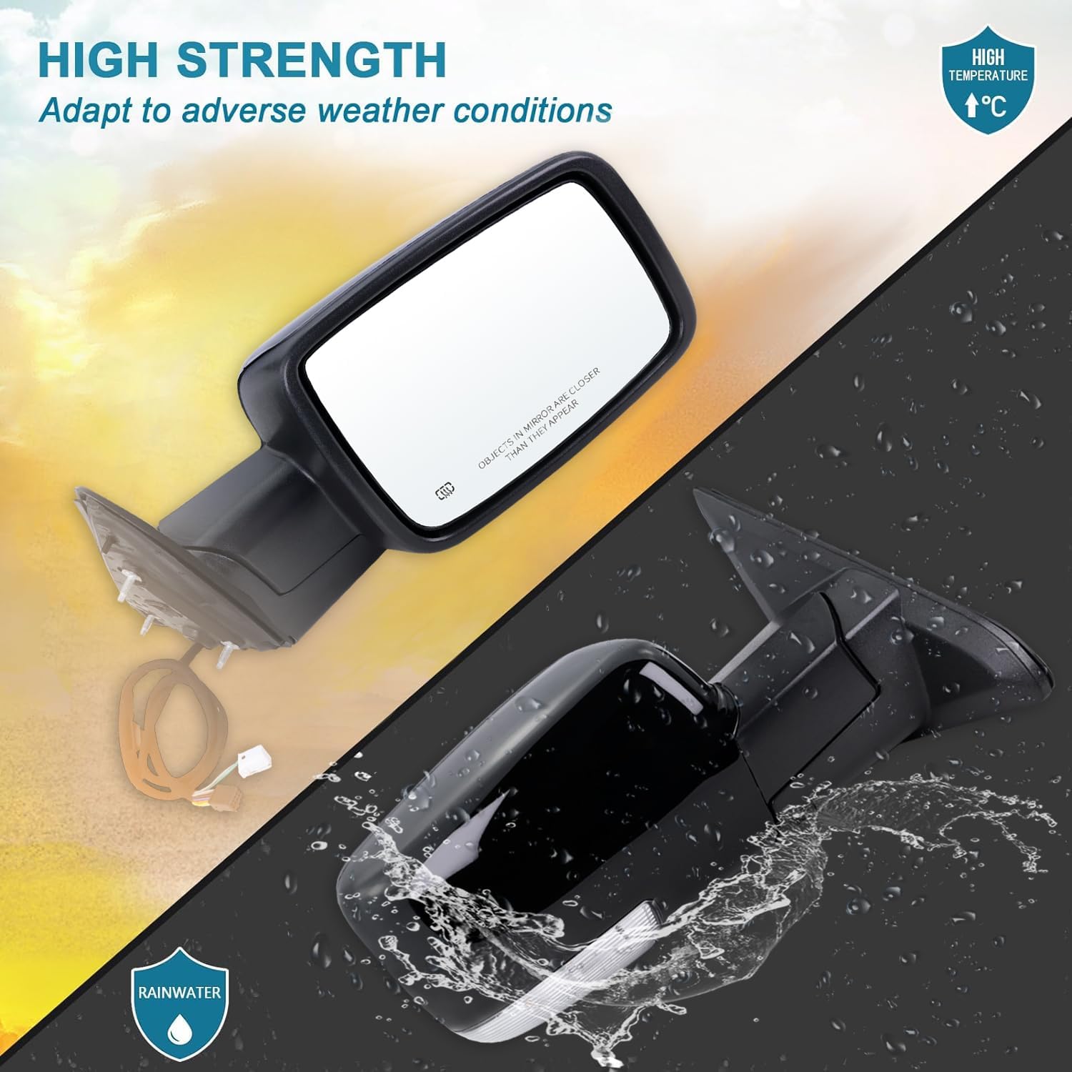 Introduction: Damage to rearview mirrors due to long-term exposure to harsh environments abnormal sounds or unintentional accidents; s product Manufactured with PA66-GF30 material housing high performance motor and more high temperature resistant glass. Let you perfectly cope with the harsh environment enhance your driving experience Our mirror is reliable and stable Durable Construction with Good Hardness and Toughness Corrosion Protection Providing Long Service Time 100% Tested Before Shipping Totally Meeting OEM Requirements