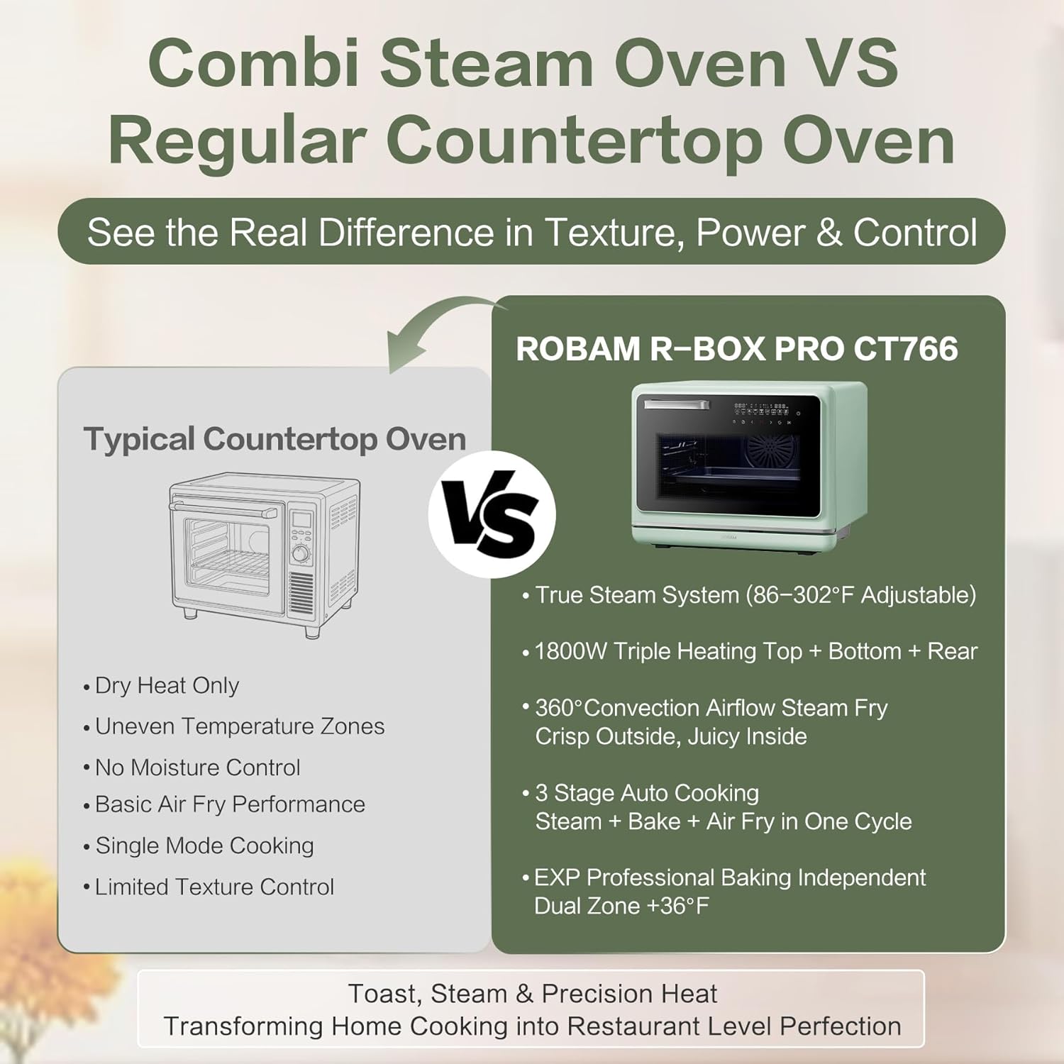 [All-in-One Countertop Air Fryer Oven Toaster Combo] Combining convection, air frying, and powerful steam cooking, this countertop oven replaces multiple kitchen appliances while keeping food flavorful, tender, and moist in one compact design
