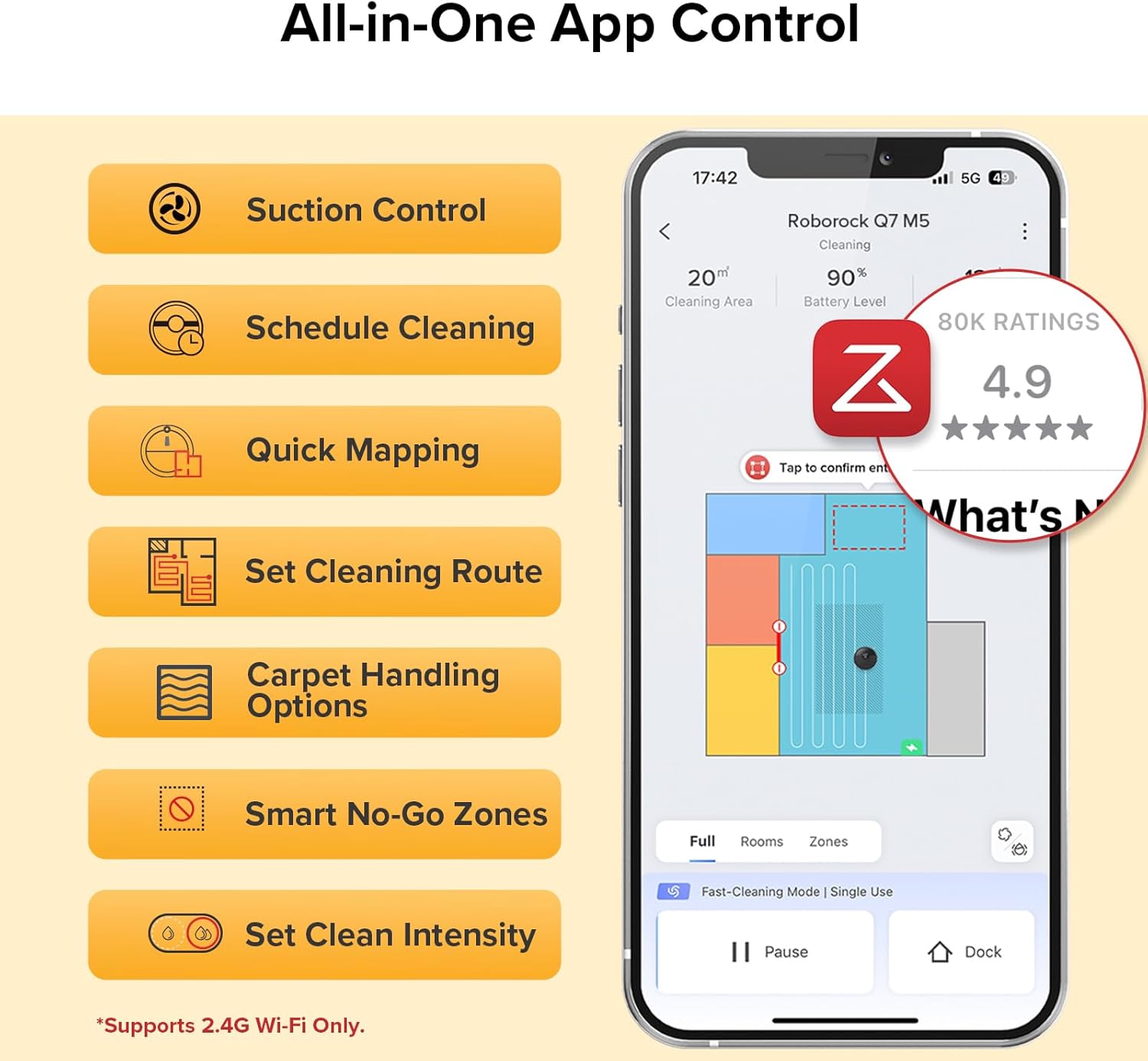 Smart App & Voice Control: Through the app, you can easily set schedules, adjust suction, and set no-go zones and mopping levels, making smart home living truly accessible.