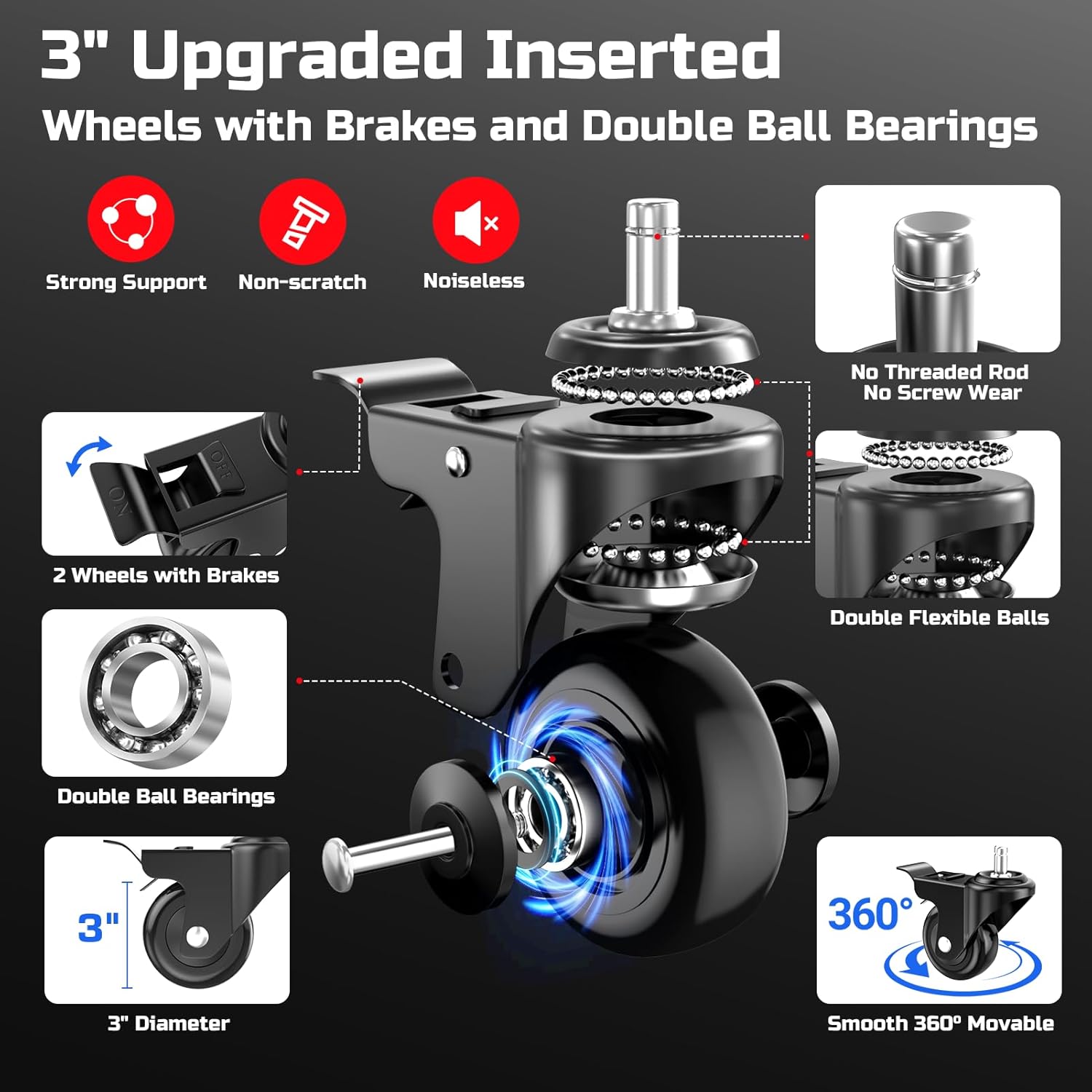 Adjustable & Non-Marring Rolling Wheels - This Rolling Pneumatic Creeper is equipped with a pneumatic height adjustment mechanism allowing users to easily adjust the height according 20.87-26.38 inch to their preference and working needs. This ensures optimal comfort and flexibility. Its also has smooth-rolling wheels that enable easy mobility around the work place. This allows mechanics to move around effortlessly while working on different projects