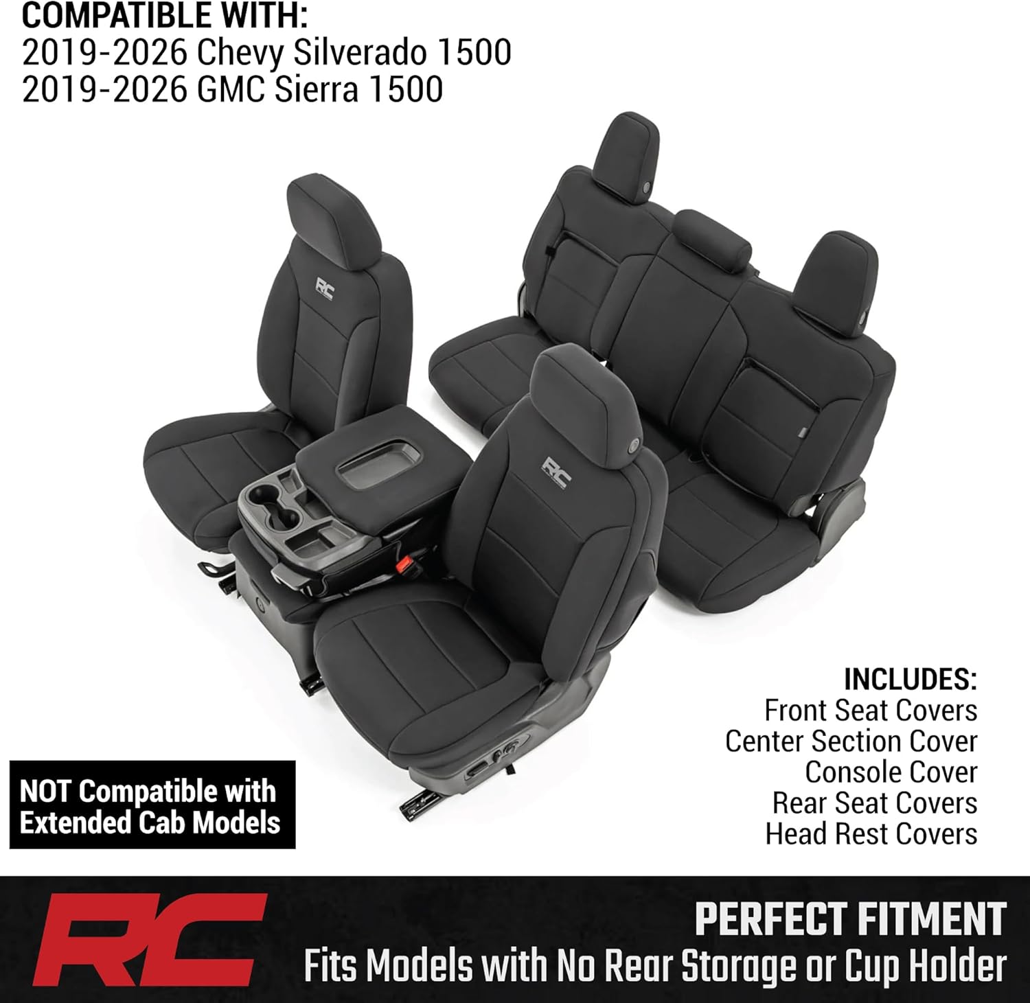 Complete Coverage: Protects your entire interior with full front-row coverage - including headrest and console covers - plus rear seat and headrest protection against kids pets and everyday wear.