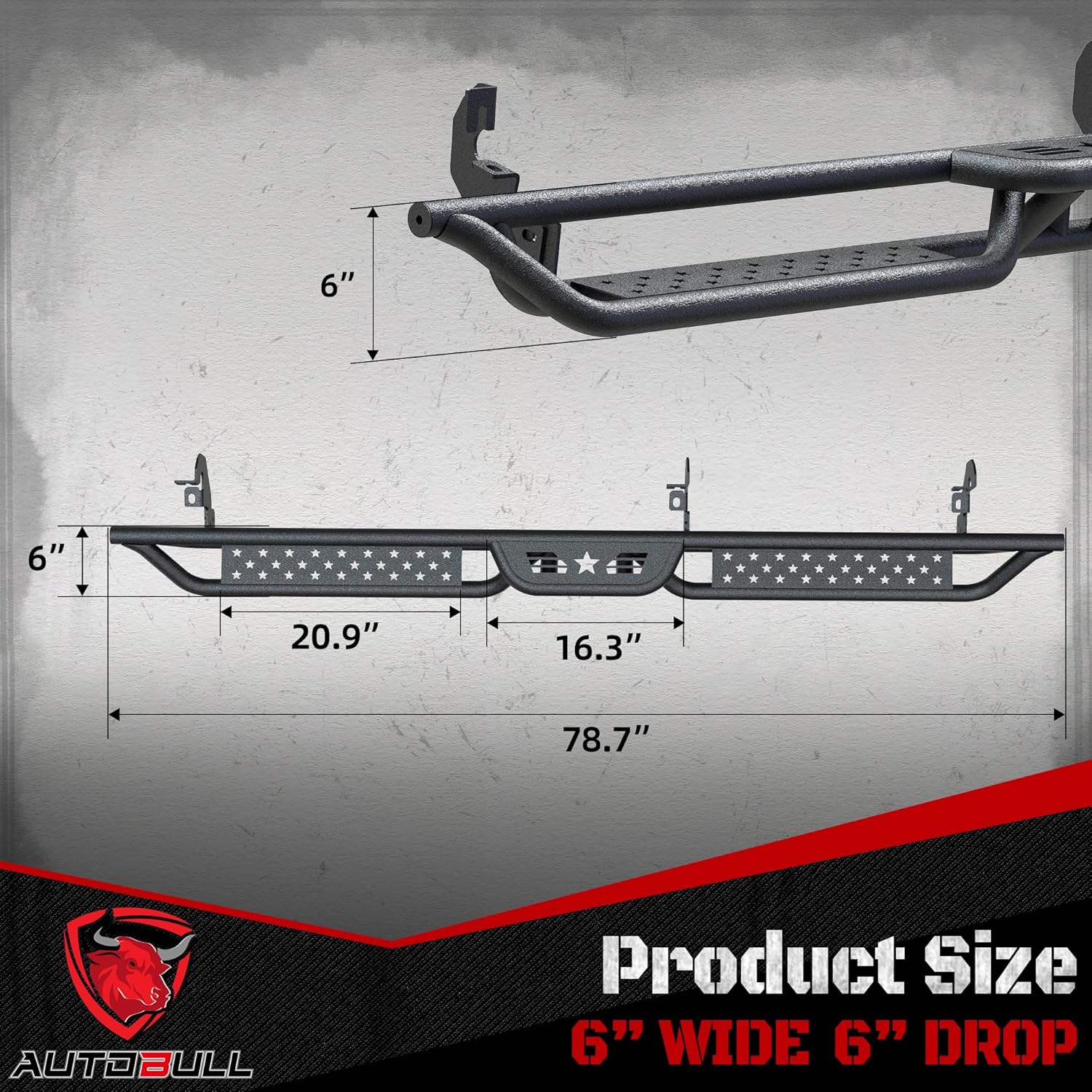 running board features a 6-inch width and a 6-inch drop design with a weight capacity of 550 pounds and its height is not adjustable.