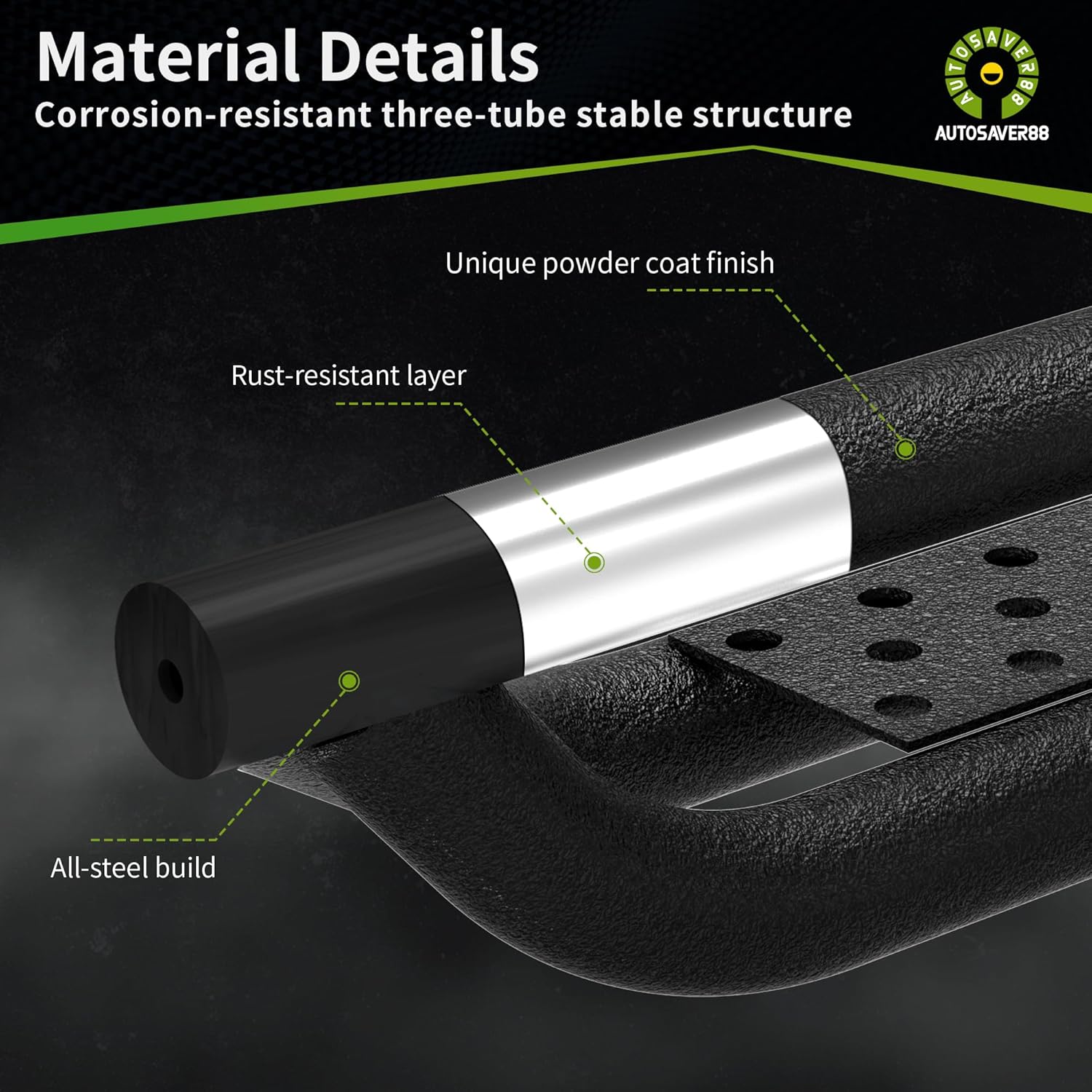 Durable Material: These step bars are made of heavy duty carbon steel with textured black powder coated surface for rust and corrosion resistance