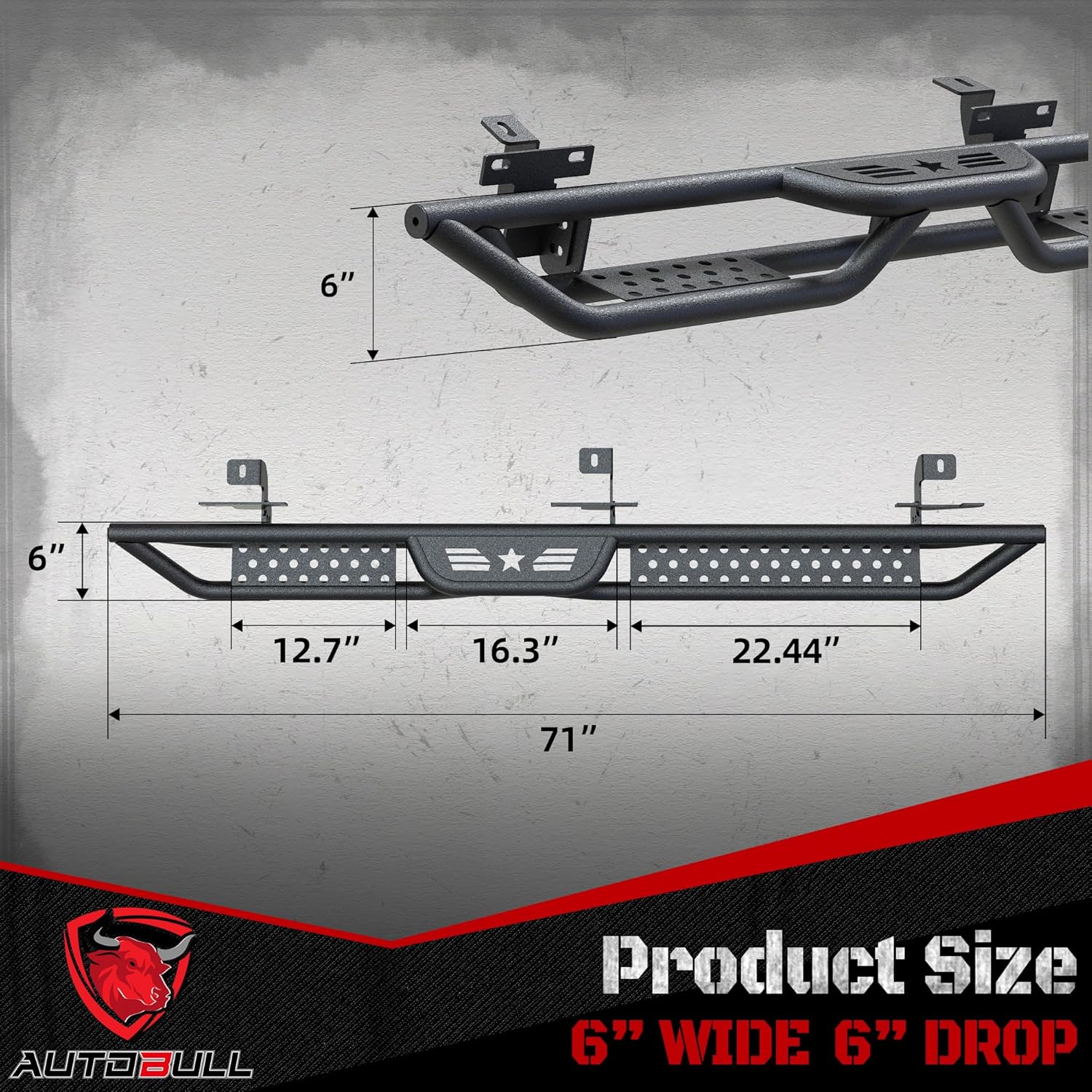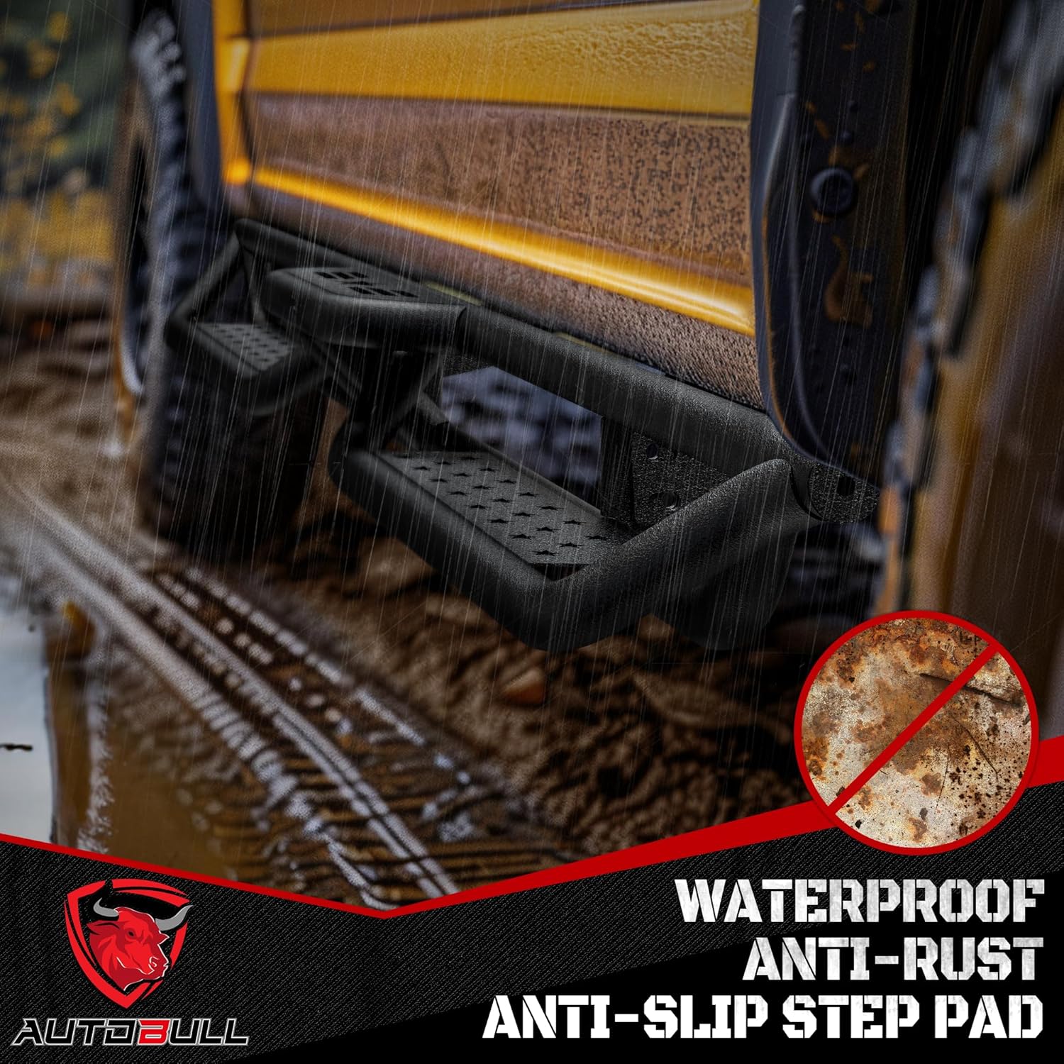 Safety: side steps offer an extra step and secure footing when entering or exiting your vehicle reducing the risk of slipping or falling.