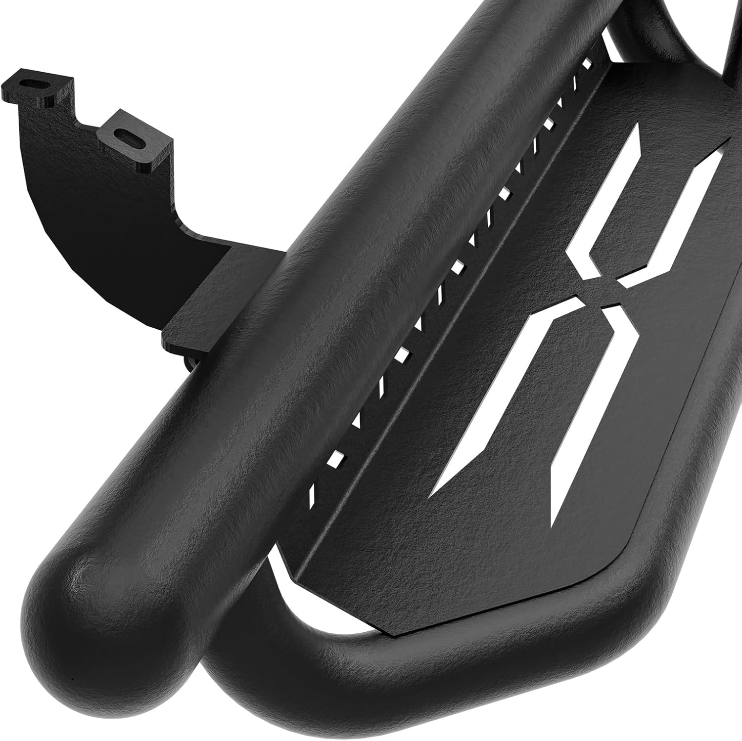 Robust and Durable: The high-quality black powder coating provides outstanding rust and corrosion resistance. Constructed from heavy-duty 2mm carbon steel each side can withstand a weight of 550 pounds. Precision laser cutting and stamping techniques contribute to a non-slip step surface and enhanced traction.
