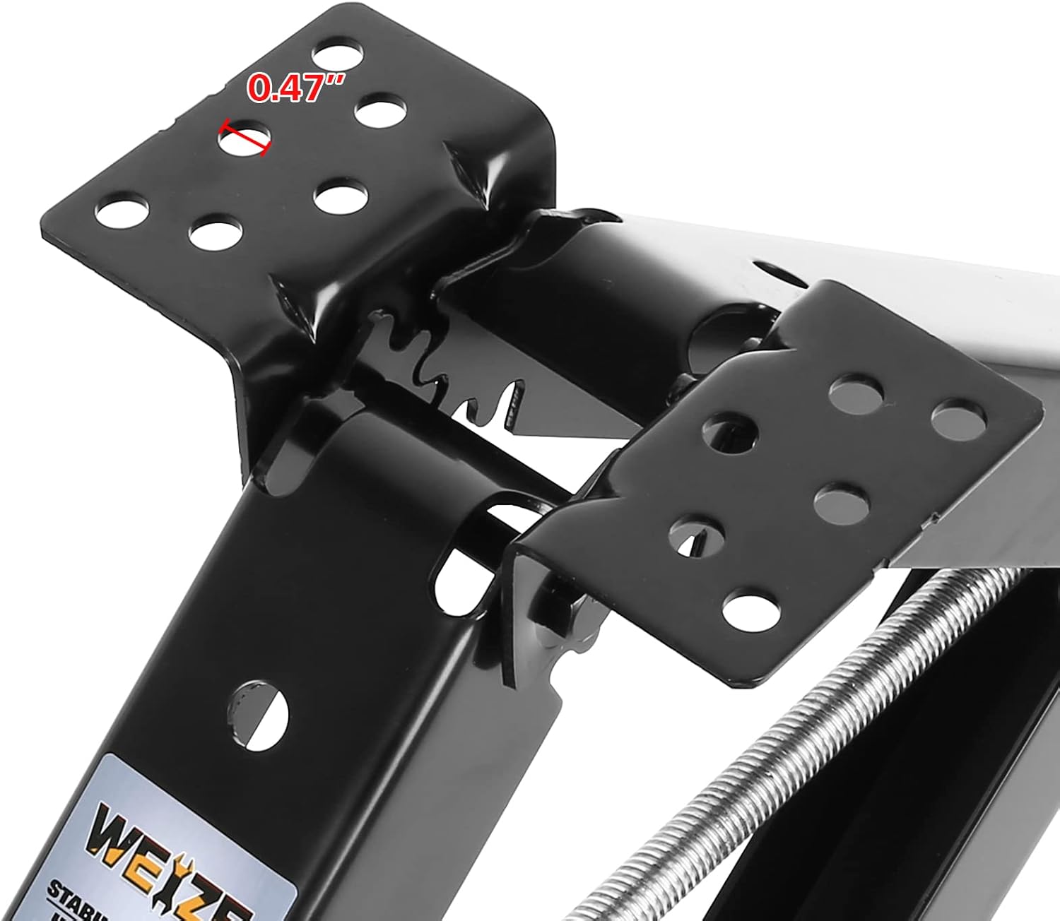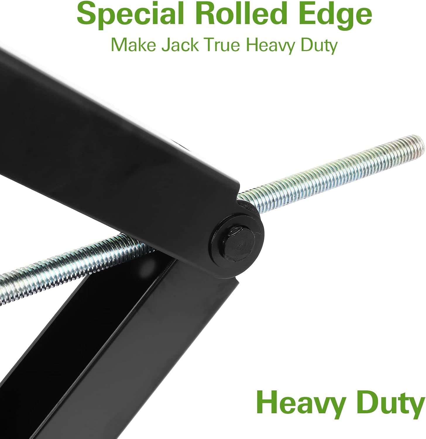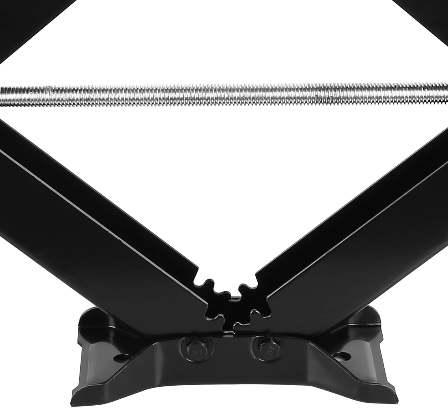 Tooth gear design of the camper scissor jack arms ensures straight line vertical extension and retraction the jack raises quickly and the crank handle turns easily.