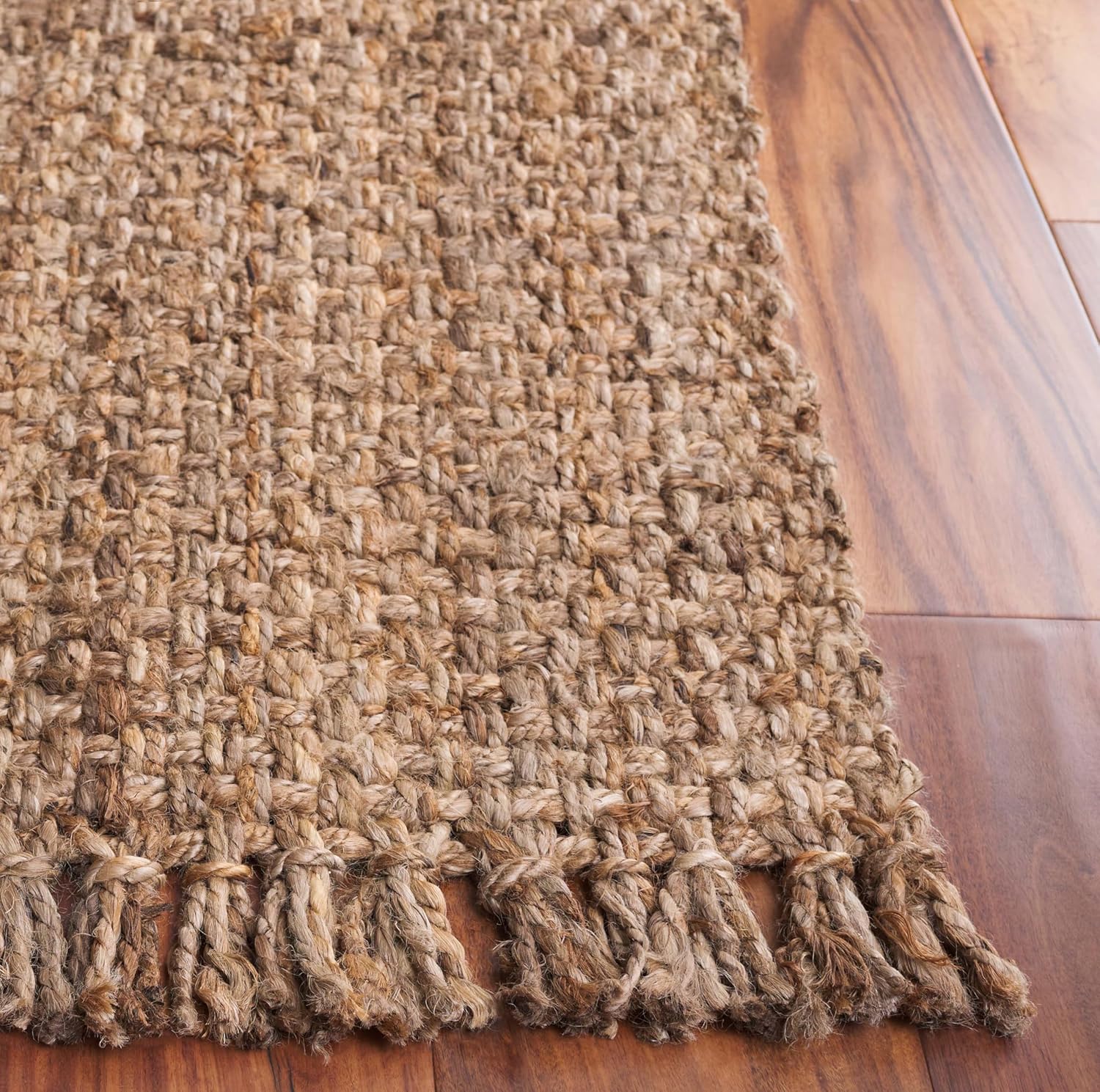Create an effortlessly relaxing haven in your home with a hand-woven natural fiber jute rug by . Fringed edges promote a casual carefree aesthetic, and a woven construction creates a boho-chic look. Its neutral brown color makes it versatile for different styles of dcor, from coastal to farmhouse.