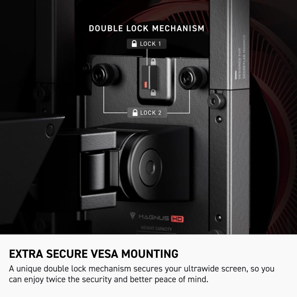 Extra-secure VESA plate with double lock mechanism keeps your ultrawide monitor in place.