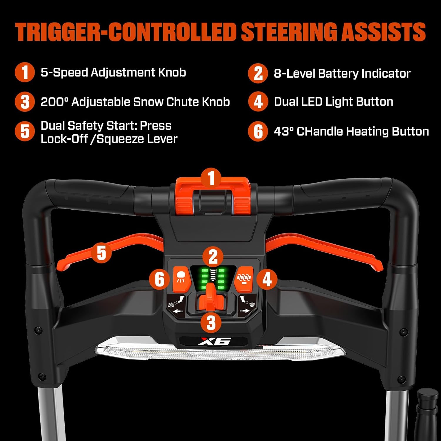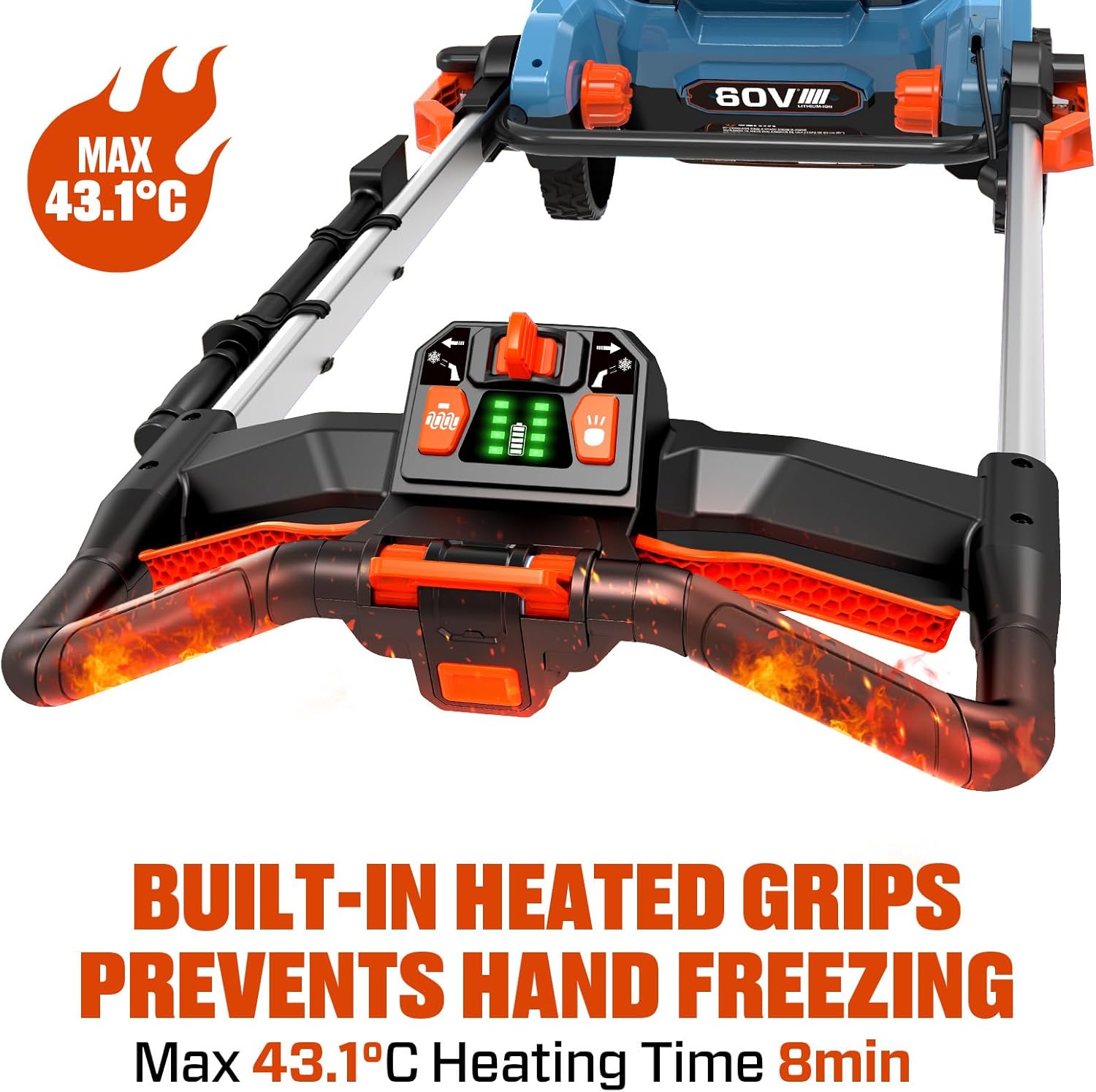 VISIBILITY AND COMFORT: Upper and lower LED headlights provide visibility in low light conditions making it easier to use the snow blower during mornings or evenings; Keep your hands warm and comfortable during cold winter days with built-in heated grips