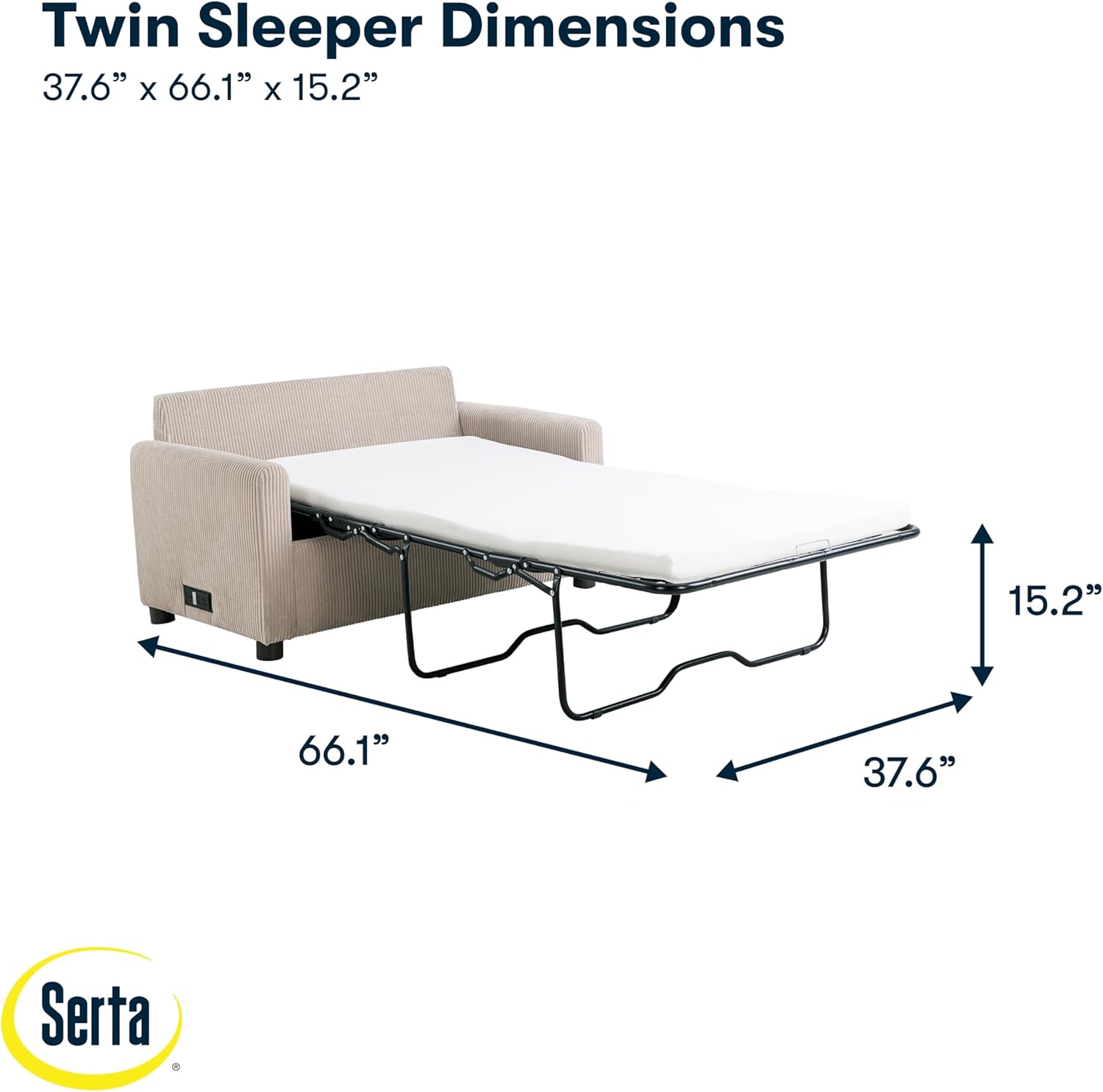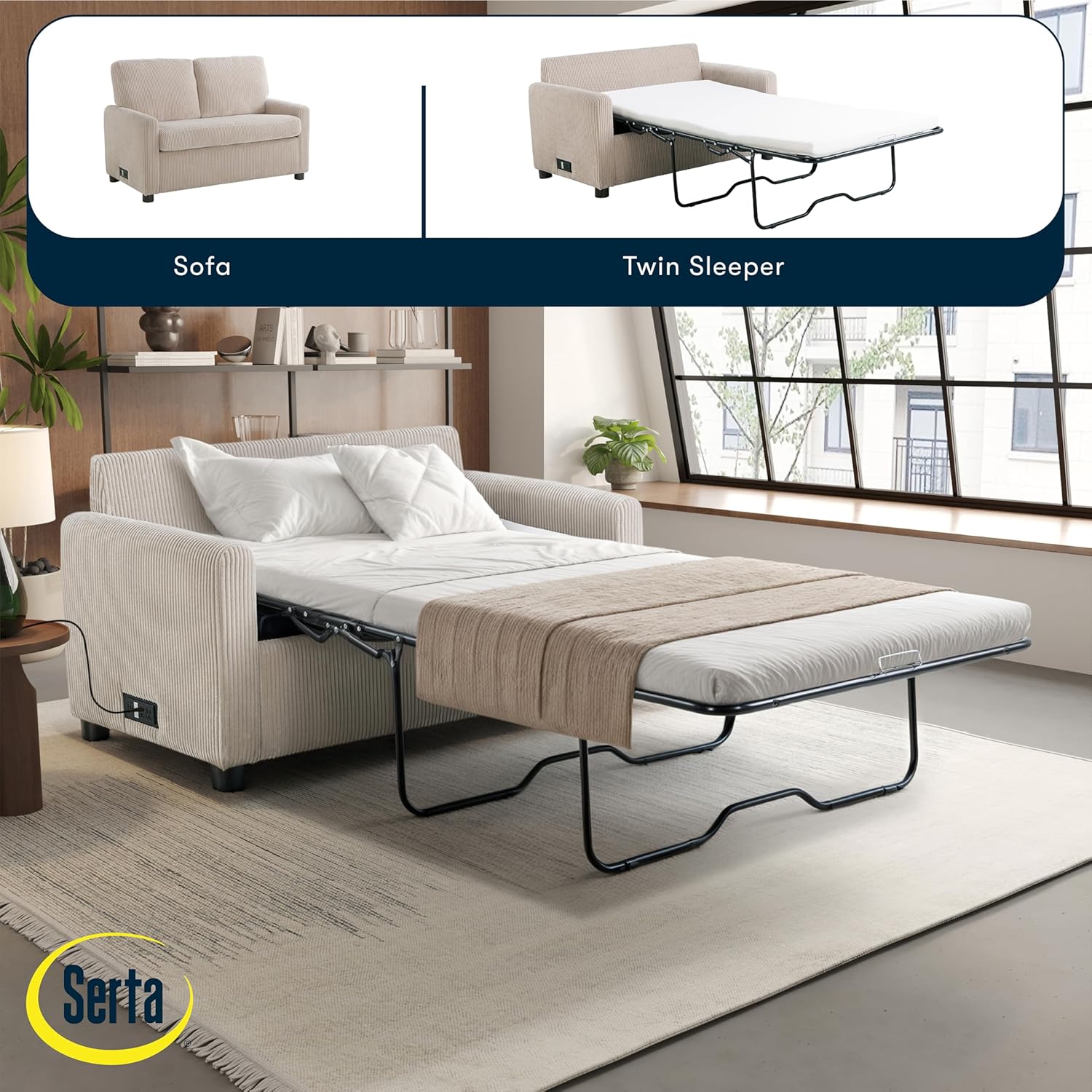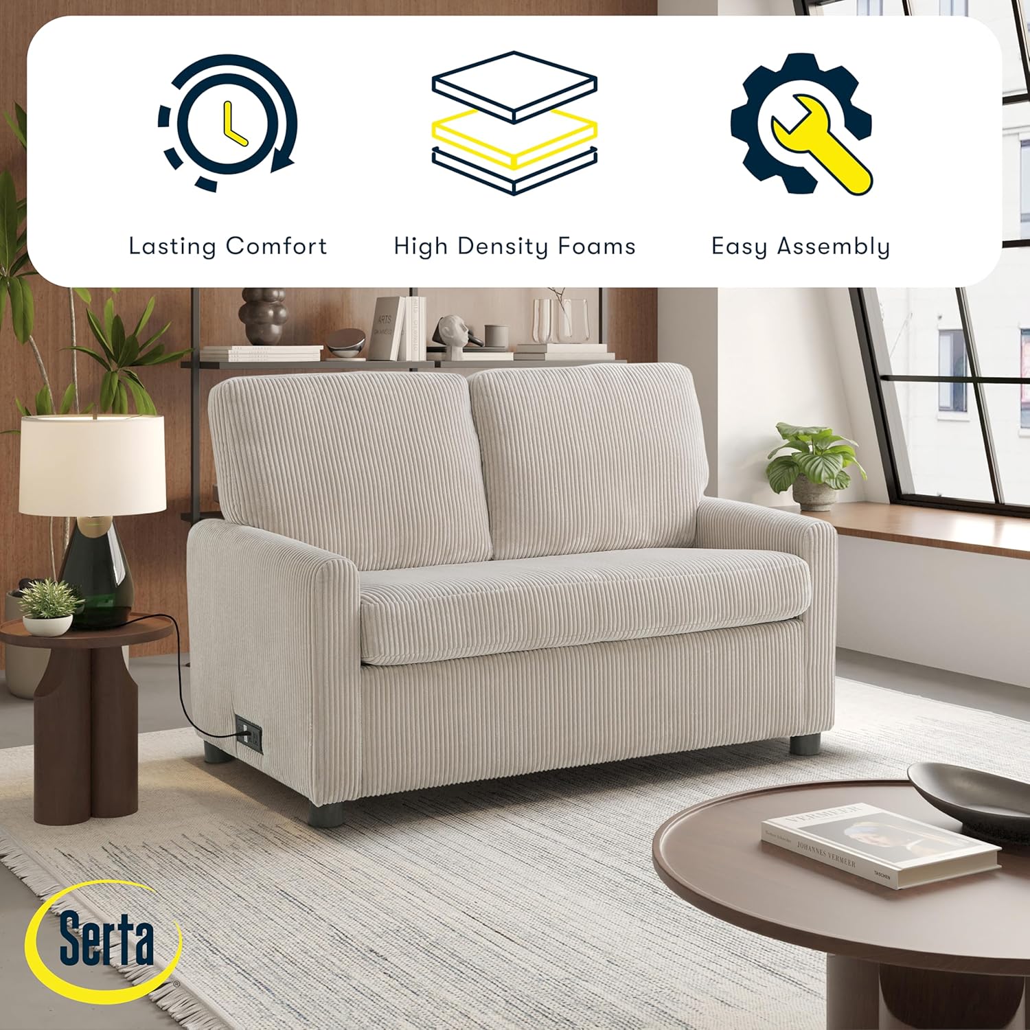 Darnold 53.5" Pull-Out Sleeper Loveseat, Twin Size, Dreamcoil Comfort, Memory Foam Pull-Out Mattress, USB-C and USB-A Power Ports, Soft Corduroy Fabric, Beige
